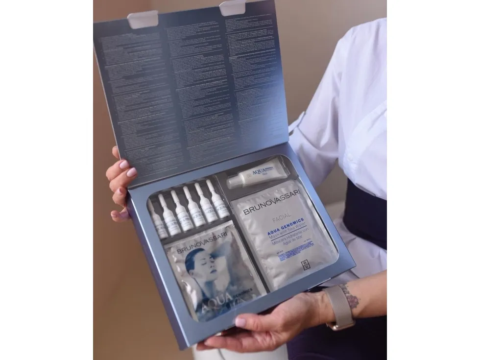 Aqua Genomics Set Bruno Vassari: Enzymatic, Peeling, Cream, For Face + Hydratant Concentrate, Hyaluronic Acid, Hydrating, Serum, For Face ml + Aqua Genomics, All Skin Types, Light Cream, For Face, 20 ml + Aqua Sorbet, Hyaluronic Acid, Hydrating, Rich Cream, For Face