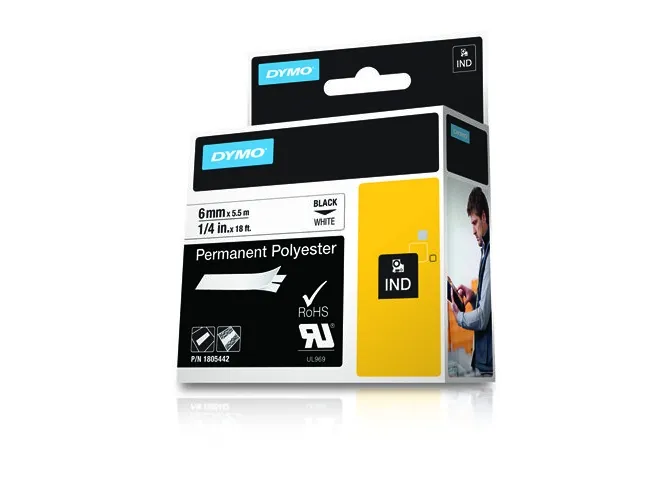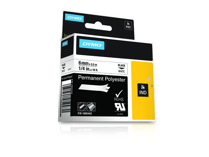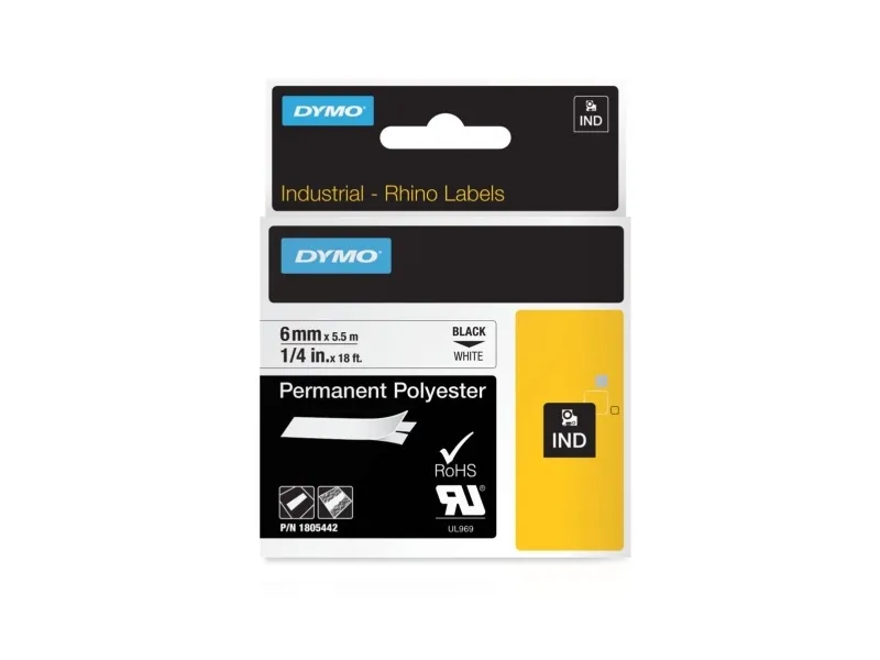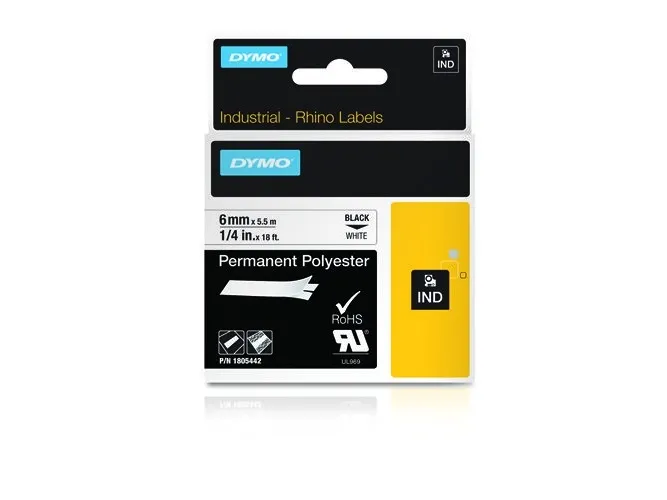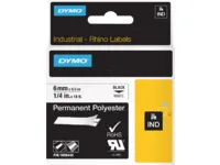 DYMO Rhino Permanent Polyester - Polyester - permanet adhesiv - svart på hvitt - Rull (0,6 cm x 5,5 m) 1 kassett(er) tape - for Rhino 6000, 6000 Hard Case Kit