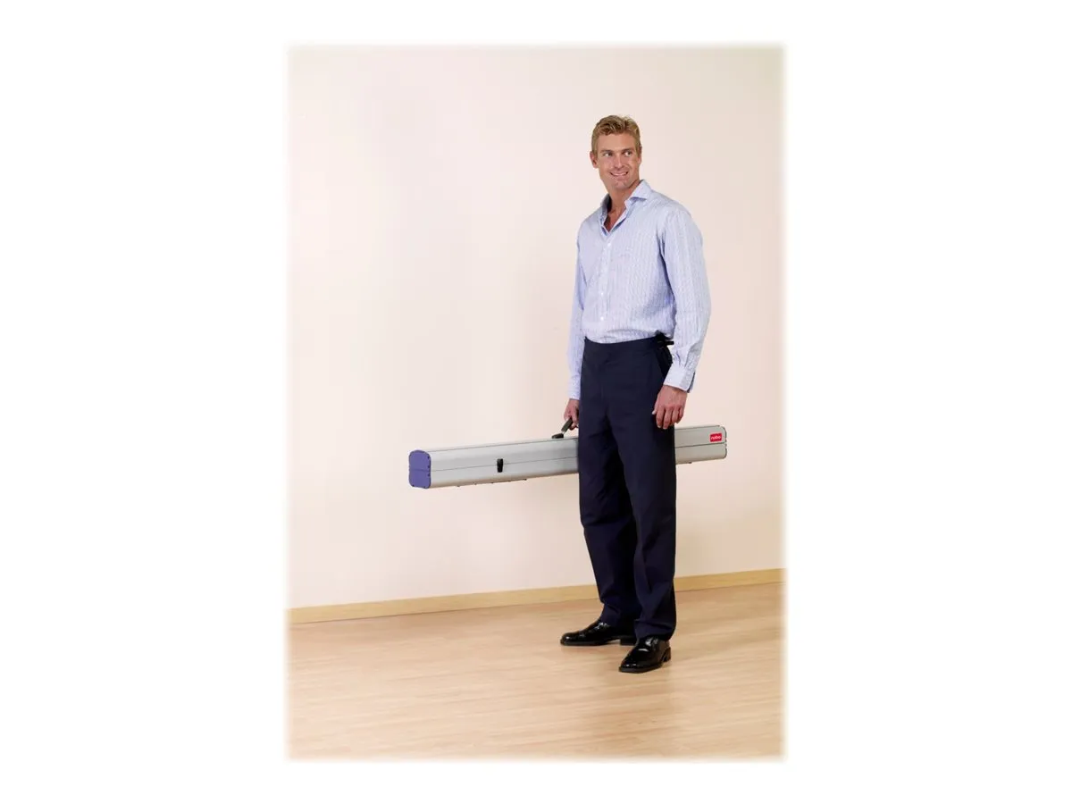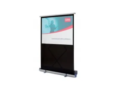 This Nobo Floorstanding Portable Screen features 2000mm diagonal viewing area, widescreen 4 3 format, lightweight construction, unique pressurized air system for smooth operation and power-assisted height control, folds into robust integral carry case.