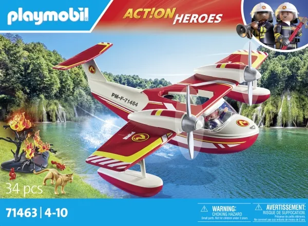 Cool PLAYMOBIL Firefighting Seaplane with Extinguishing Function. Floats in the water and provides space for the pilot. With fillable water tank and extinguishing function. Embark on thrilling rescue missions with the new PLAYMOBIL Firefighting Seaplane with Extinguishing Function! This heroic set from the PLAYMOBIL Action Heroes play world makes children's hearts race with excitement. Thanks to its clever design with buoyancy aid and floats, the plane effortlessly floats on water. The rotating propellers give the aircraft dynamism, while the optional loop at the front of the nose opens up creative play possibilities. Inside, there's room for a figure, ready for exciting missions. The innovative water-dropping function allows the plane to collect water in the water and release it in the air – an interactive experience for young firefighting heroes! The PLAYMOBIL Firefighting Seaplane is an ideal gift or surprise for adventurous children aged 4 and up. Playmobil 71463. Type: Action/Adventure, Recommended age (min): 4 yr(s), Recommended age (max): 10 yr(s), Product colour: Multicolour, Material: Plastic