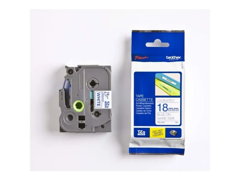 Brother TZe-243 - blå på hvid 18mm x 8m