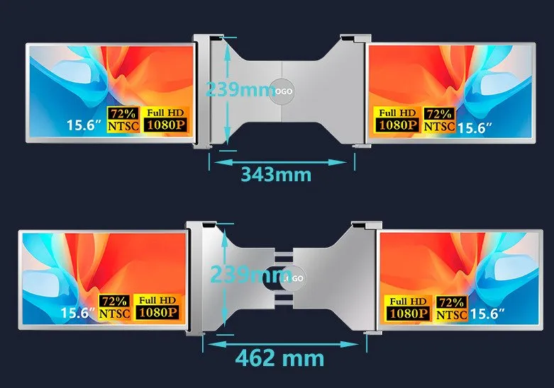 Extralink Smart Life S9 består av to bærbare 15,6" IPS-skjermer som gir en mer komfortabel og effektiv arbeidshverdag. Den utvidede arbeidsflaten gjør det enklere å organisere oppgaver og jobbe med flere programmer samtidig uten å måtte bytte mellom vinduer hele tiden.