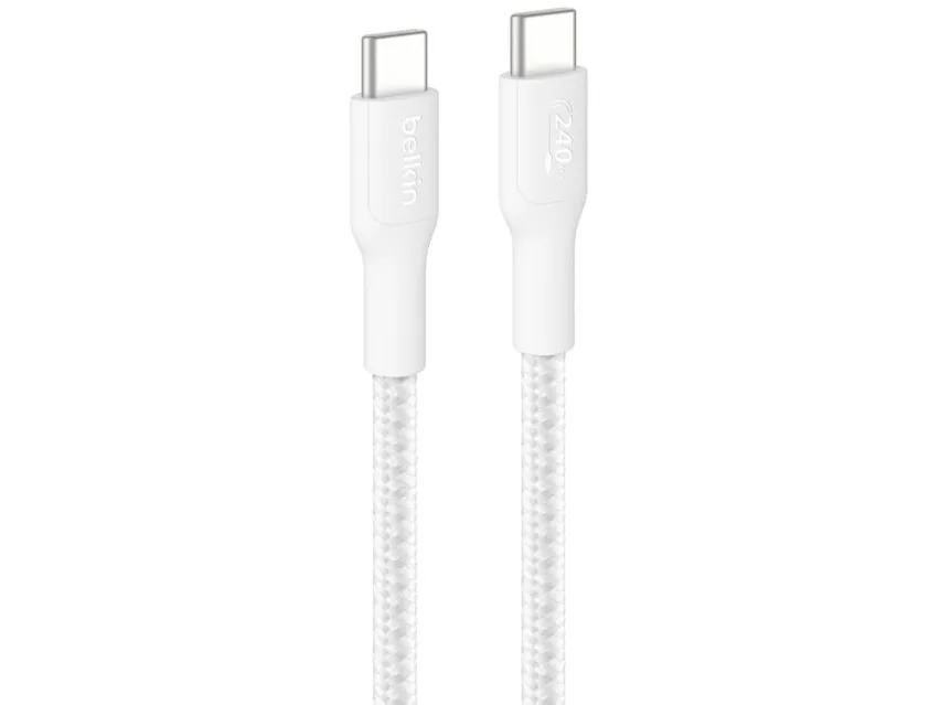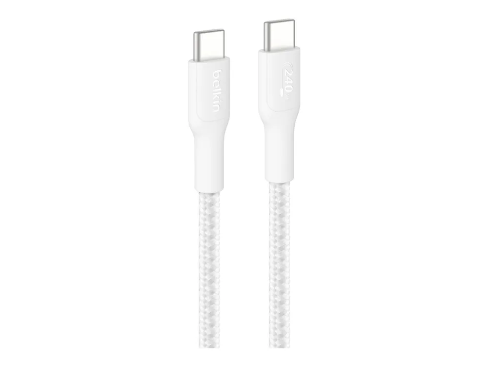 Belkin BoostCharge Eco - USB-kabel - USB-C (hann) til USB-C (hann) - USB 2.0 - DC 48 V - 5 A - 3 m - USB Power Delivery (240 W), flettet kabel - hvit