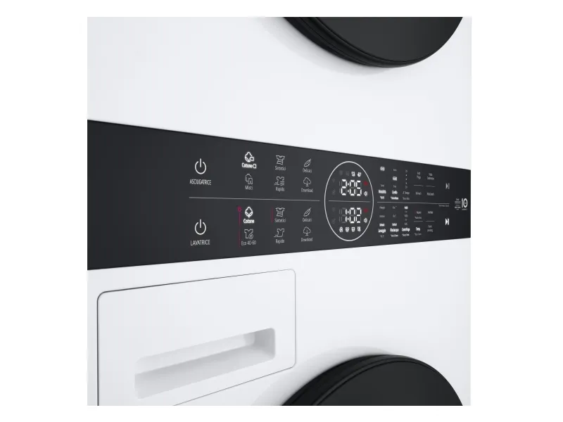Product type- Washing machines - dryers. Brand- LG. Model- WT1210WWF . Width- 60 cm. Depth- 66 cm. Height- 165.5 cm. Colour- White. Weight- 128 kg. Energy Efficiency Class- A. Washing efficiency class- C. Washing capacity- 12 kg. Drying capacity- 10 kg. Drilling, rpm- 1350. Control- Sensoric. Washing programs- Downloaded program, Quick wash, Cotton, Anti allergy program, Mixed, Delicate program, Bed linen washing program, Wash & Dry XS Rapid. Screen- Yes. Water spill protection- Yes. Postponement of the start of the program- Yes. Child safety function- No. Mandatory warranty- 24 mo. Energy efficiency class scale- A - G.