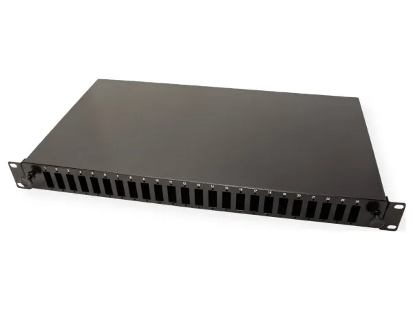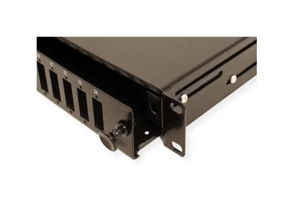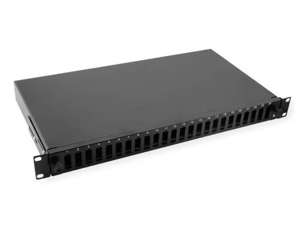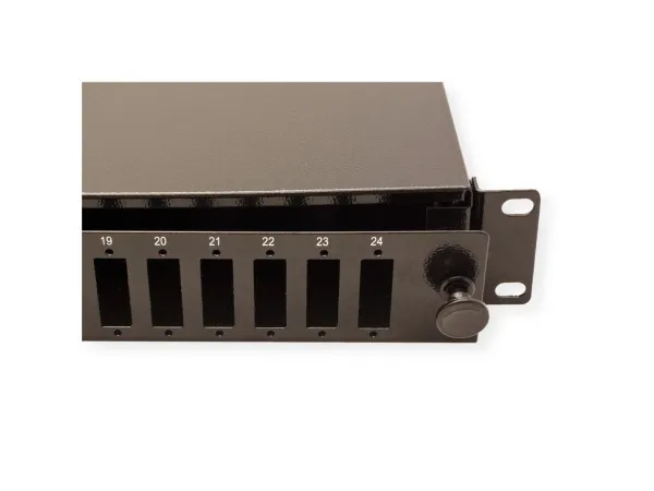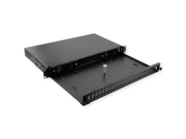 VALUE 19-splejseboks tom 1 HE, 24x SC DX / LC 4-dobbelt, kan trækkes ud. LWL 19-panel