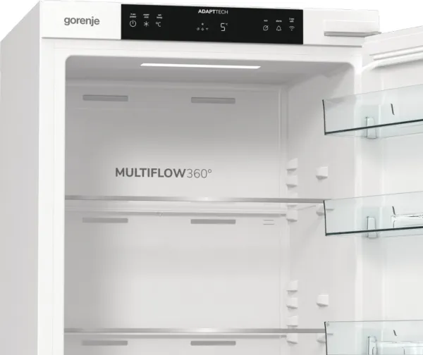 Designed to provide comfort and control, this refrigerator is equipped with a user-friendly LED display located on top and touch controls. With energy consumption of 135 kWh per year, it operates quietly at a noise level of just 35 dB(A) while maintaining Energy Class E. The multi-flow technology keeps your food fresher for longer, making meal preparation efficient. The temperature alert features or the audible and visual door open alarm prioritize your convenience.