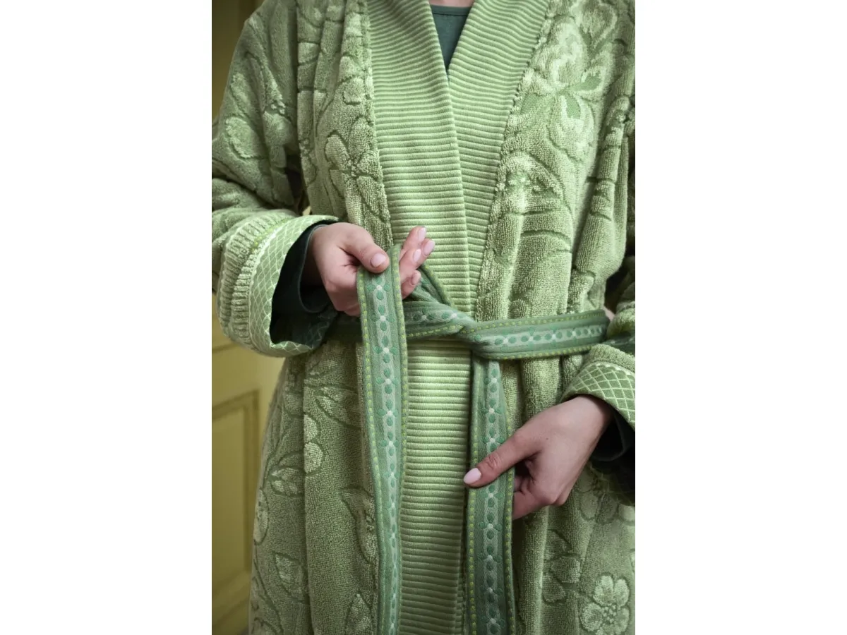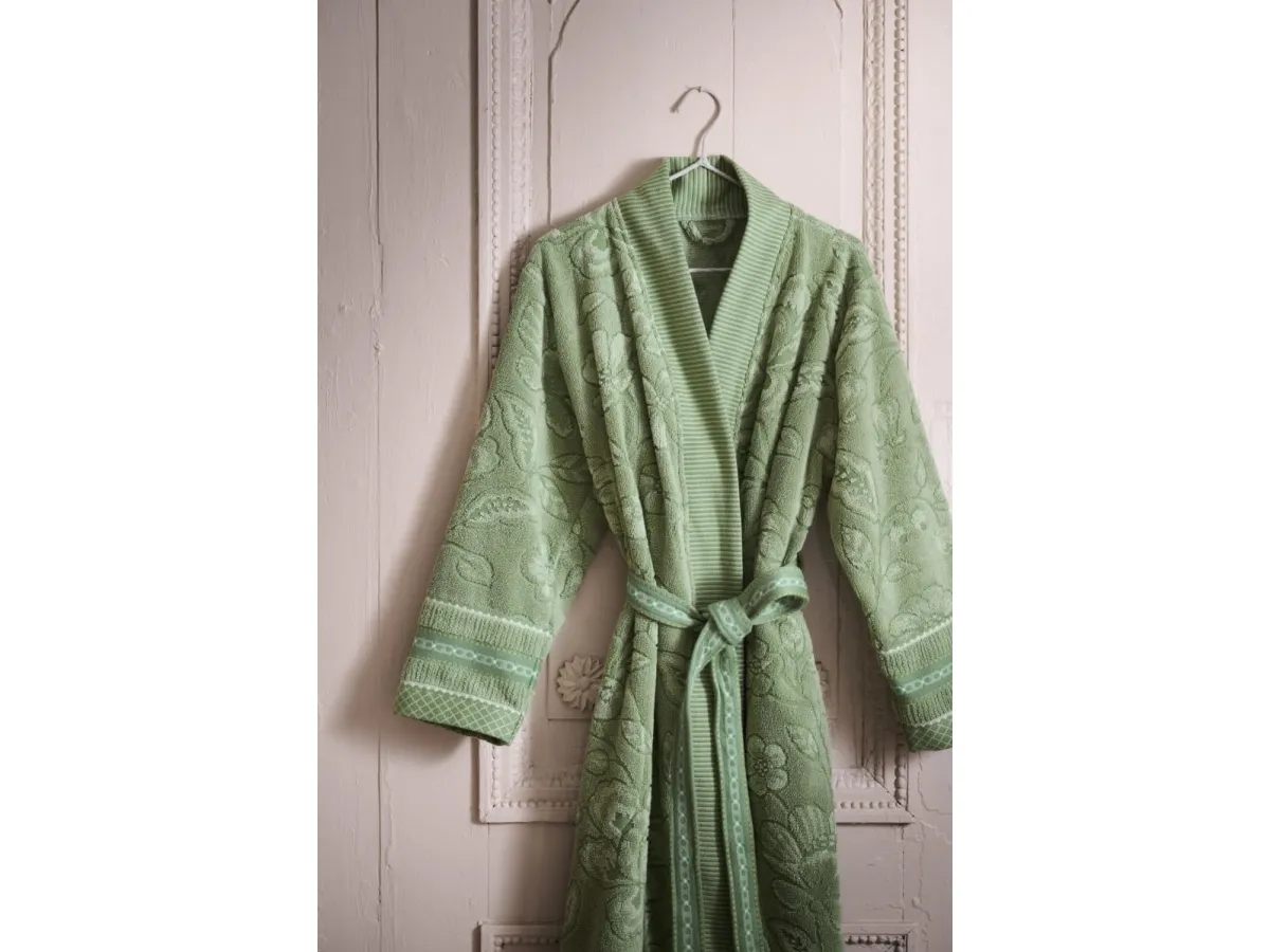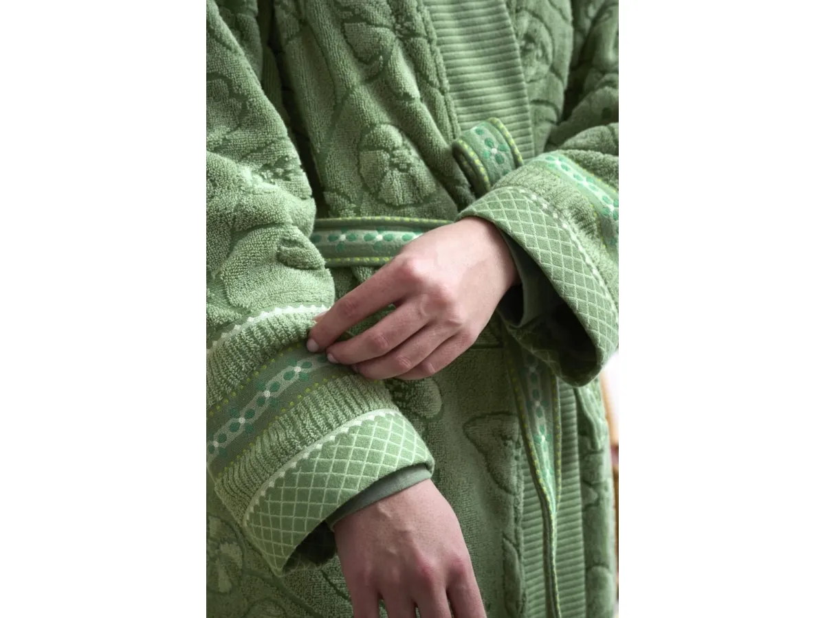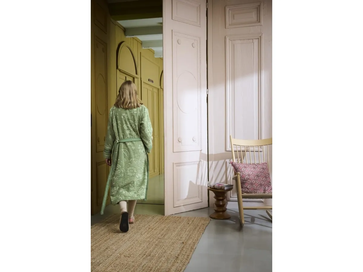 Forkæl dig selv med PIP Jasmin Jacquard Bademantel Green XXL. Designet af det anerkendte mærke Pip Studio, er denne bademantel en fusion af luksus og komfort. Fremstillet i 100% bomulds frotte, er denne bademantel utrolig blød og absorberende, hvilket gør den ideel til at svøbe sig ind i efter et varmt bad eller en afslappende spa-dag. Jacquard-teksturet tilføjer et sofistikeret touch, der gør denne bademantel til en stilfuld tilføjelse til din garderobe. Bademantelen er grøn, en farve der bringer en følelse af ro og harmoni, perfekt til at skabe en afslappende atmosfære. Med sin generøse størrelse XXL, er denne bademantel designet til at give en behagelig og rummelig pasform. Da denne bademantel kan maskinvaskes ved 30° - 40°, er den også nem at vedligeholde. Med sin holdbare konstruktion og høj kvalitets materiale, vil denne bademantel holde dig varm og hyggelig i mange år fremover. Invester i PIP Jasmin Jacquard Bademantel Green XXL og oplev ultimativ komfort og luksus i dit eget hjem.
