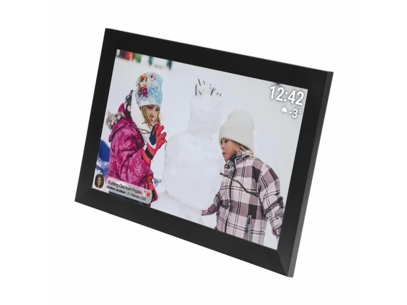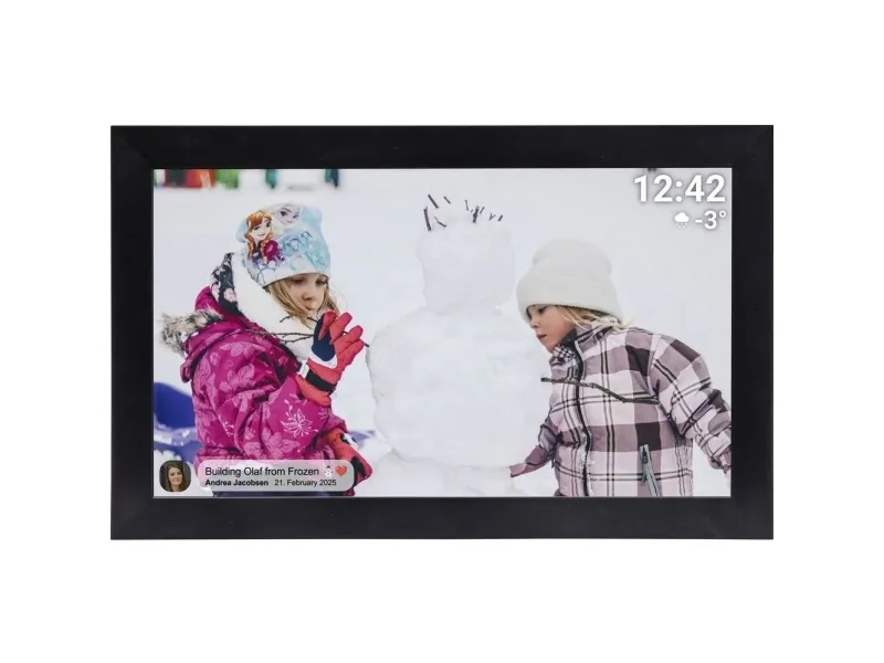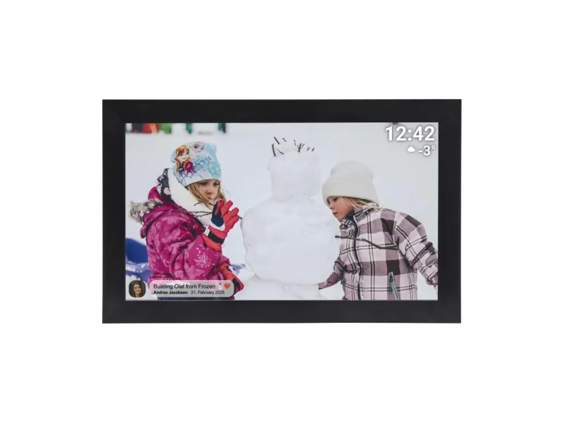 Forbindelse der forbliver: Med den integrerede FRAMEO-software og WLAN sender venner og familie snapshots direkte på din ramme. Del oplevelser i realtid, uanset hvor langt væk fra hinanden.