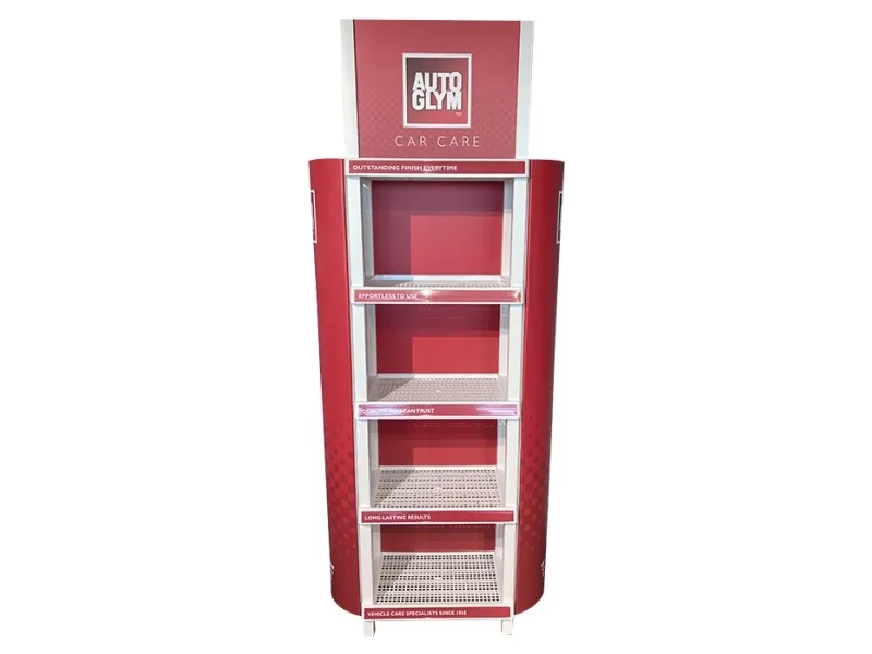 Autoglym Core Gulvstativ med 4 hylder Opgrader din butik med Autoglyms nye gulvstativ – den nyeste generation af professionelle retail displays, designet til maksimal synlighed og stærk produktpræsentation. Med sit moderne og robuste udtryk giver stativet et indbydende og professionelt look, der effektivt fremhæver dine varer og understøtter øget salg. Gulvstativet er fremstillet i holdbare materialer og er nemt at samle, hvilket gør det perfekt til både faste placeringer og midlertidige kampagner. Med en imponerende bæreevne på 45 kg pr. hylde får du en stabil og sikker løsning – også til tungere produkter. I pakken medfølger topbanner, hyldestrips, bagplader og sidepaneler i fuld længde, så du nemt kan tilpasse displayet efter sæsonkampagner, nye produkter eller butikkens visuelle udtryk. Resultatet er et markant og iøjnefaldende display, der skaber opmærksomhed, øger kundernes engagement og styrker dit salg.