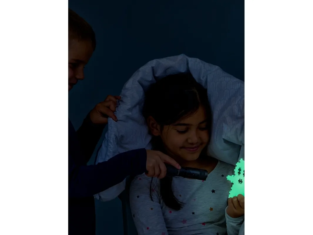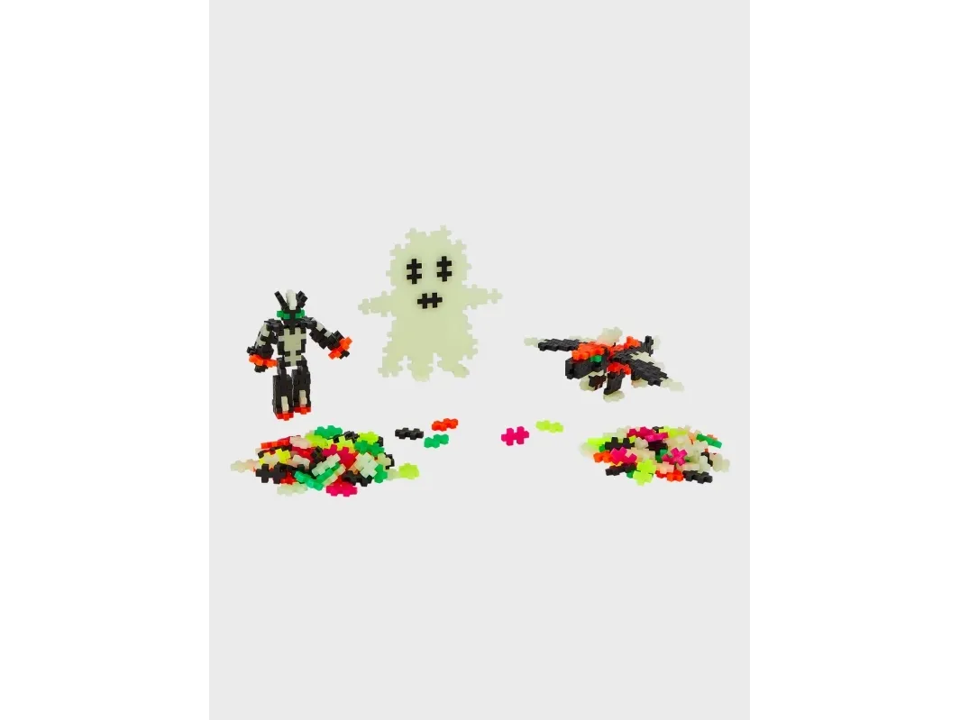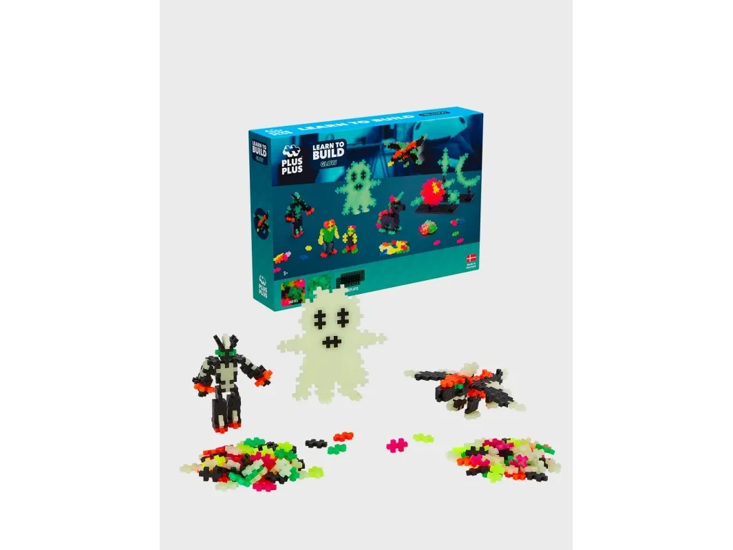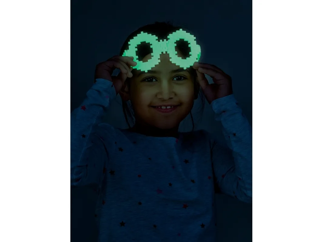Learn to build cool Glow in the Dark builds with Plus-Plus. This set instructs kids how to build simple characters, ghosts, space unicorns and much more. The set contains 500 pcs. in mixed colors as well as the cool glow-in-the dark pieces to really make the creations stand out. Set also comes 2 small baseplates and a guidebook.