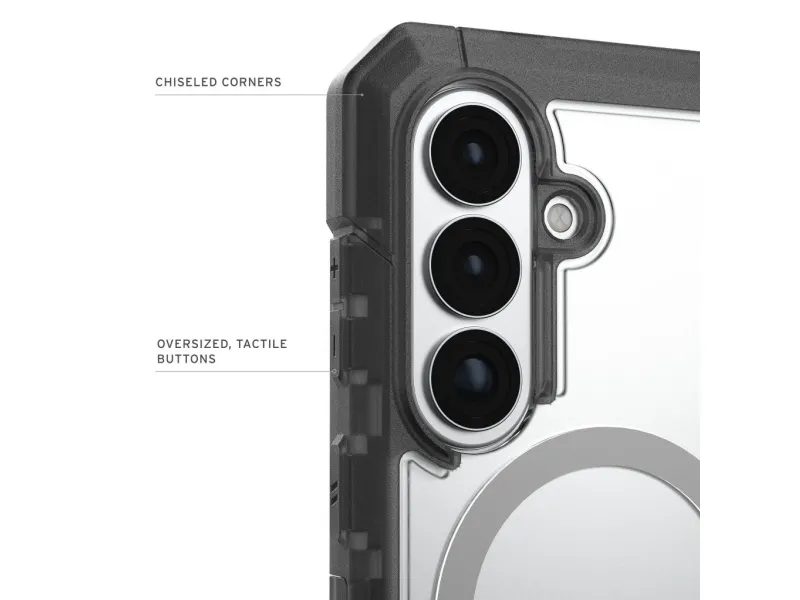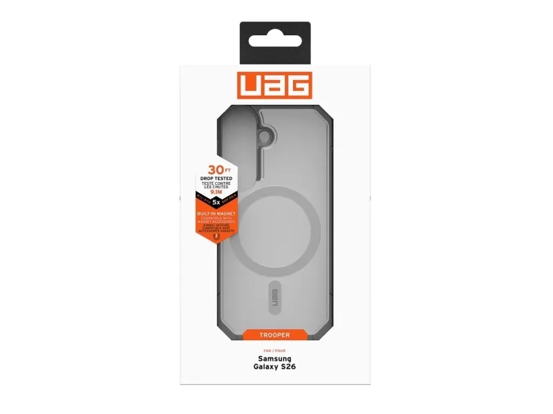 Built for everyday protection with a rugged refined design the Urban Armor Gear Trooper case keeps your Samsung S26 secure without adding unnecessary bulk. It combines durable materials dependable drop protection and magnetic compatibility in a case designed for confident daily use.Magnetic case compatible with magnetic charging and accessoriesMulti-layer construction for reliable everyday protectionRugged outer shell with enhanced grip for secure handlingResponsive button covers and precise cutouts for easy accessTested drop protection for added confidence on the moveMagnetic case compatible with magnetic charging and accessories The built-in magnetic module makes the case easy to use with magnetic chargers and a wide range of compatible accessories. It is designed to support convenient wireless charging while keeping the case slim practical and ready for daily use. Multi-layer construction for reliable everyday protection The case is built with multiple protective layers that work together to help shield your phone from drops bumps and daily wear. This construction improves shock absorption and adds structure helping protect your Samsung S26 in demanding environments as well as everyday situations. Rugged outer shell with enhanced grip for secure handling A durable exterior helps protect against scratches and impact while the textured grip makes the phone feel more secure in your hand. Whether you are commuting travelling or using your phone on the go the added grip helps reduce slips and improves everyday handling. Responsive button covers and precise cutouts for easy access The case is designed for a precise fit with tactile button covers that provide a clear and responsive press. Accurate cutouts ensure easy access to ports speakers and essential phone functions so protection does not come at the cost of convenience. Tested drop protection for added confidence on the move Built to handle real-world use the case is tested to provide strong drop protection for your device. It is made for users who want dependable protection in a slim functional form giving you added peace of mind throughout the day. Package includes1 x Urban Armor Gear Samsung S26 Trooper with Magnetic Case - Clear/AshProduct specificationsBrand: Urban Armor GearProduct name: Samsung S26 Trooper with Magnetic Case - Clear/AshColour: Clear/AshCompatibility: Samsung Galaxy S26Magnetic module: YesWireless charging compatibility: YesProtection type: Multi-layer rugged protectionGrip: Textured anti-slip gripButton design: Oversized tactile button covers