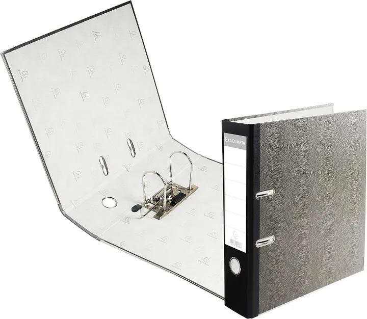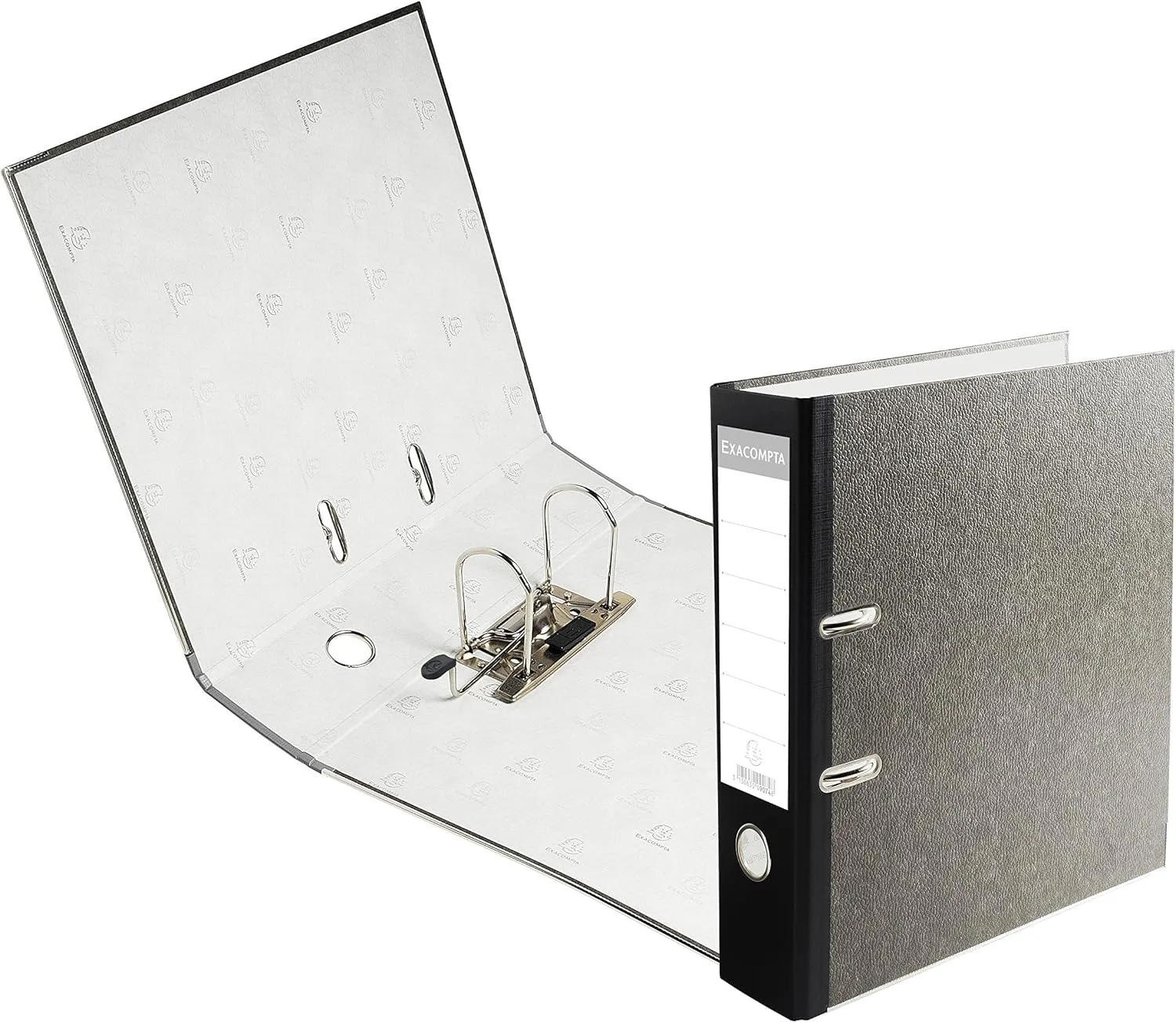 Exacompta Prem.Touch Brevordner. A4 50mm. Sort Ryg/ Grå Marmoreret. Label på ryg, (kasse med 20stk).