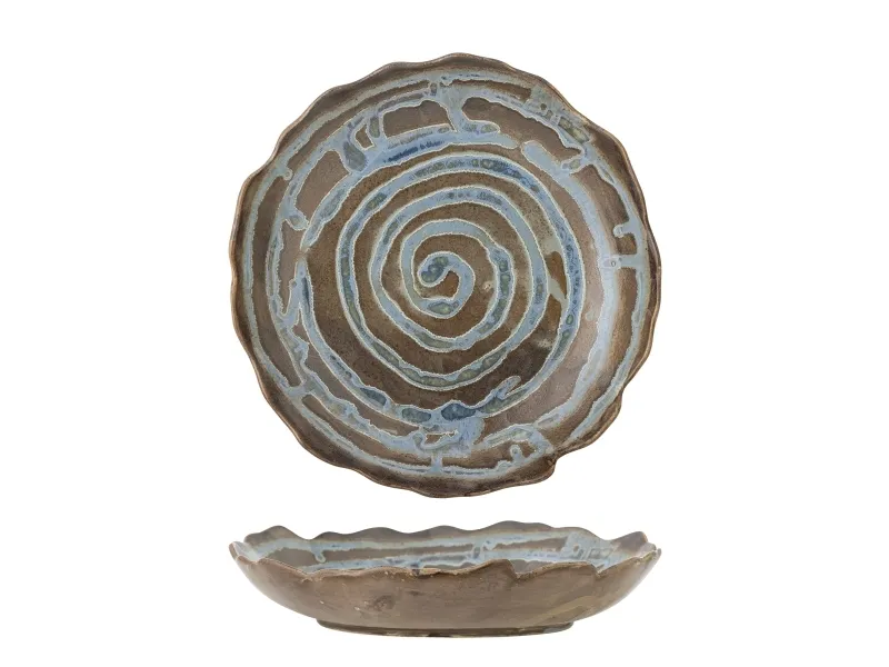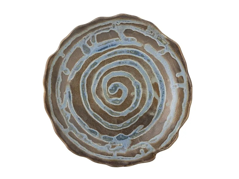 Marjorie Fadet fra Creative Collection er lavet af stentøj med håndmalet spiraldekoration og ujævne kanter. Den reaktive glasur skaber et levende farvespil og gør hvert fad unikt.