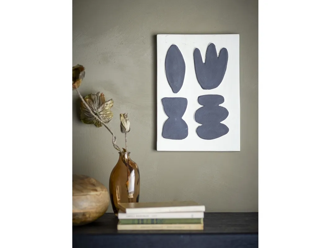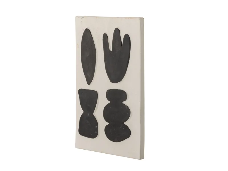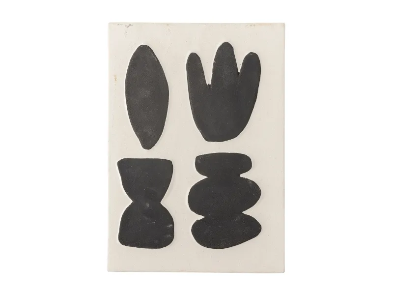 Lutton Vægdekorationen fra Bloomingville er lavet i stentøj, og har et grafisk udtryk. Den sandfarvede og sorte farvekombination skaber en rolig kontrast, som kan passe ind i mange hjem. Vægdekorationen kan hænge i alle rum, og den er yderst dekorativ på en plakatvæg, hvor den blandes med farverige eller grafiske plakater.