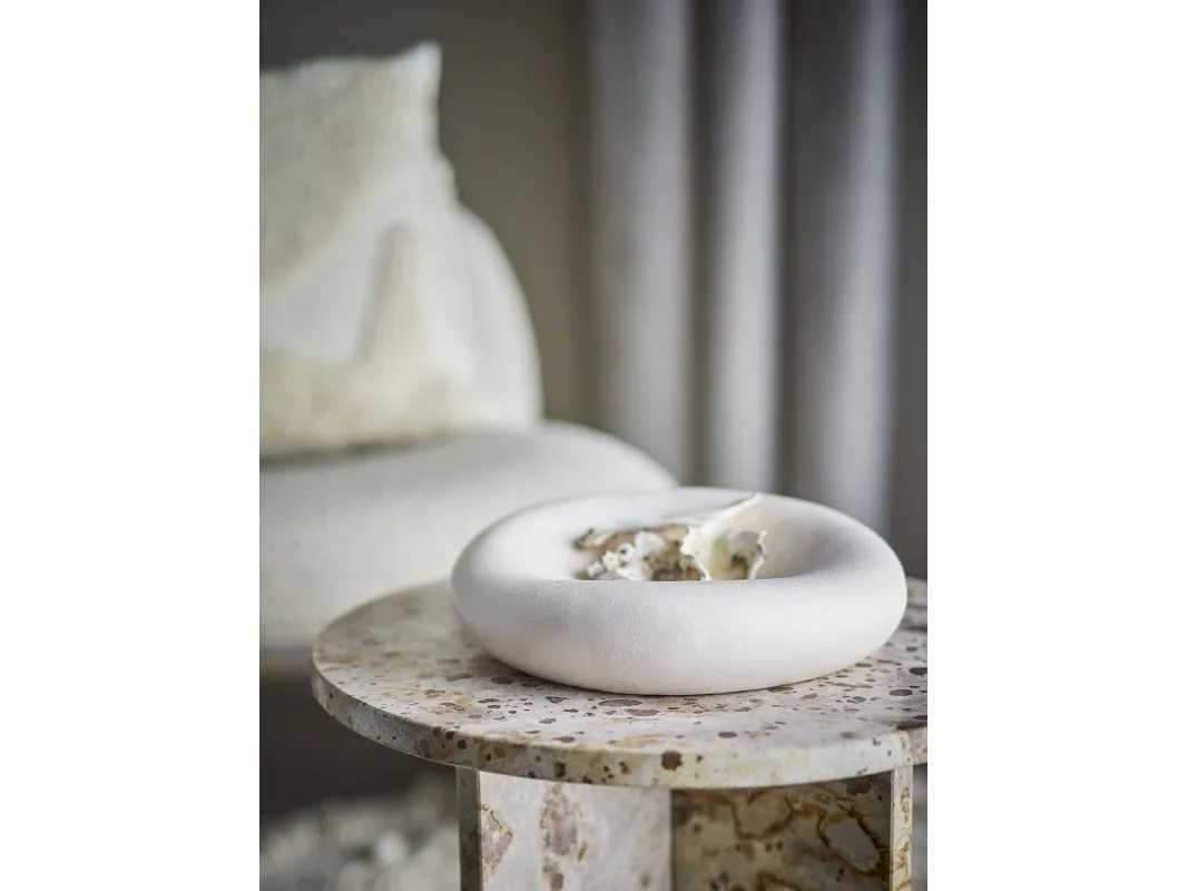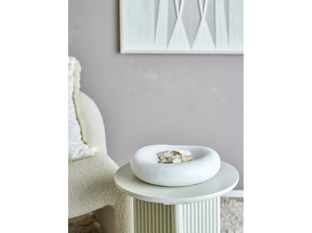 Audra Skålen fra Bloomingville er formgivet i stentøj med en hvid, glat glasur. Den bløde, organiske silhuet giver et roligt og stilrent udtryk. Perfekt som dekorativ detalje – alene eller med små pyntegenstande.