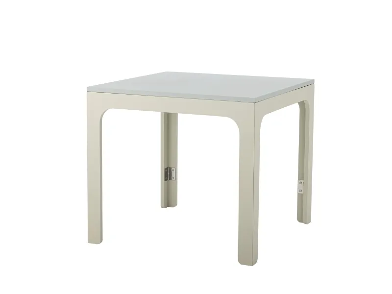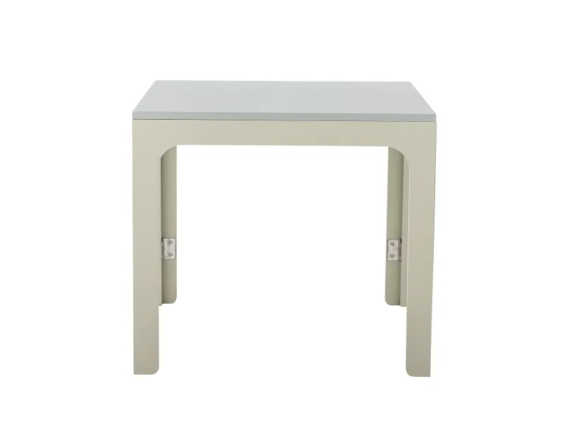 Felipe Bordet fra Creative Collection er et sammenklappeligt bord i malet MDF med afrundede hjørner og synlige hængsler i siderne. Overfladen er ensartet i grå og beige nuancer og giver et roligt, sammenhængende udtryk. Den malede overflade fremhæver det enkle og funktionelle design, der passer godt til små og kompakte rum.