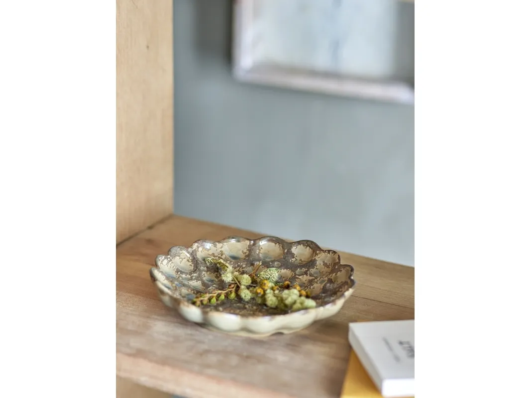 Oyu Bakken fra Creative Collection er lavet af stentøj i smukke brune jordfarver. Bakken er inspireret af naturen med fordybninger i designet. Den lille bakke er også perfekt til opbevaring af smykker og nips. På grund af glasuren vil der forekomme farveforskelle.