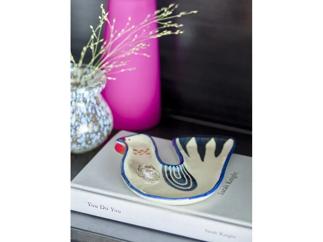 Trudy Skålen fra Bloomingville er formet som en fugl og lavet i stentøj, smukt dekoreret i lyse og blå nuancer. Da skålen er håndmalet, kan der forekomme variationer i farve og mønster, hvilket gør hver enkelt unik. Den er perfekt til at opbevare små genstande eller blot som et dekorativt element i indretningen.