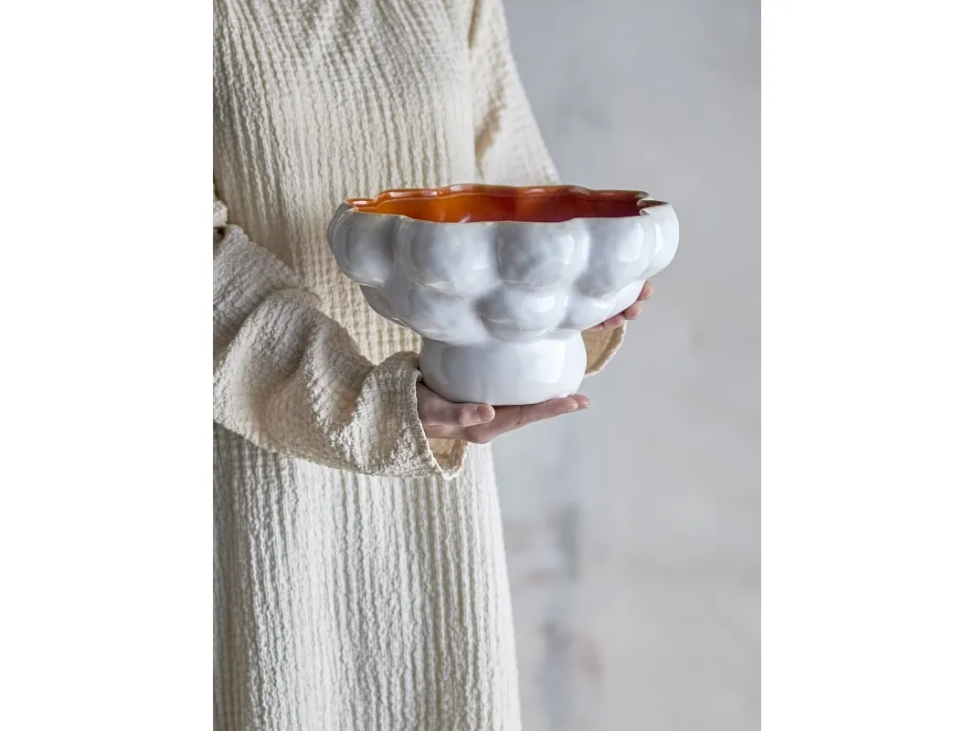 Valkyrie Skålen fra Bloomingville er en charmerende og iøjnefaldende skål med en unik, boblende form og farverig indvendig glasur. Denne alsidige skål kan både bruges som en skål eller som en dekorativ urtepotteskjuler. Dens legende design og funktionelle anvendelse gør den til et musthave tilbehør i dit hjem.