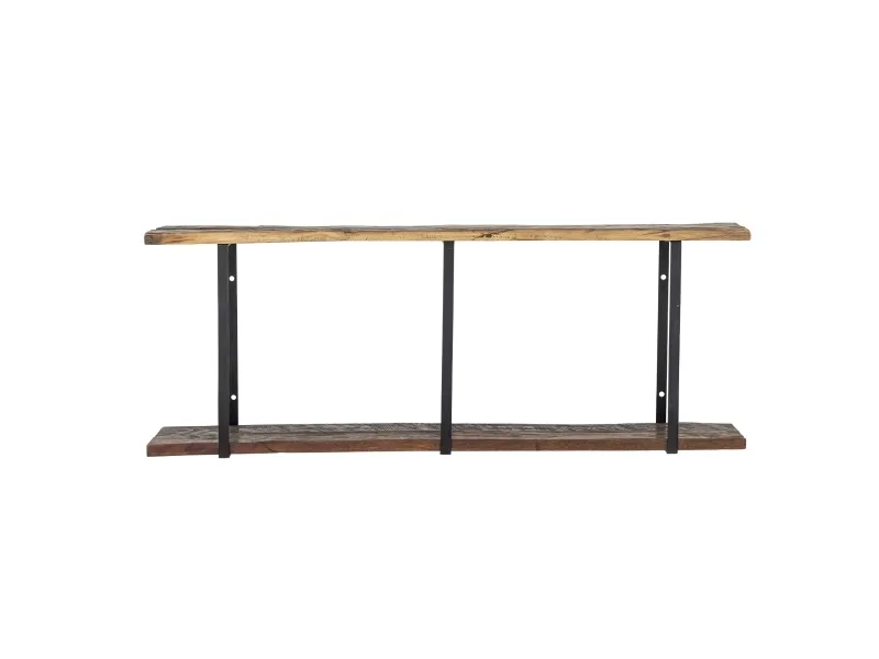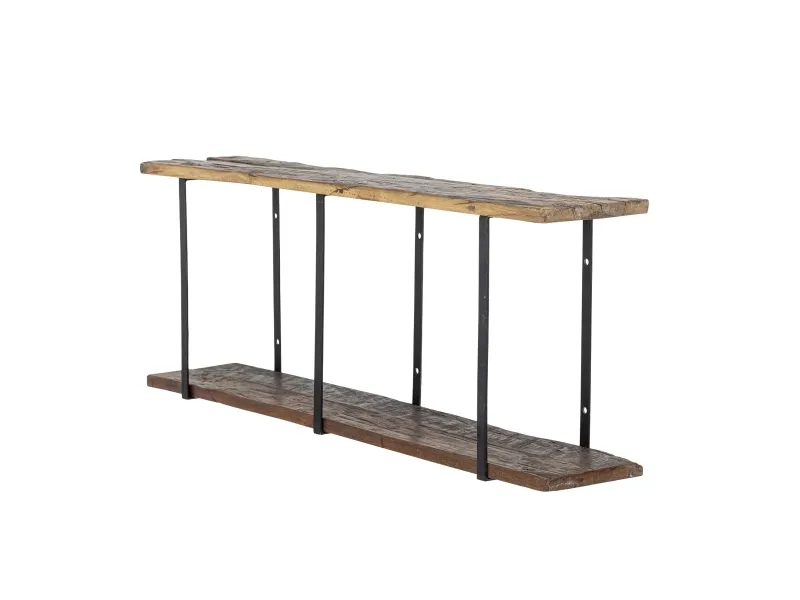 Tallymay Hylden fra Creative Collection er en hylde med to niveauer, fremstillet af genanvendt træ med stel i pulverlakeret jern. Den har en vokset overflade og en rektangulær form, der fremhæver de varme brune toner og den synlige åretegning i træet. Da den er lavet af naturmaterialer, kan der forekomme farvevariationer, som gør hver hylde unik.