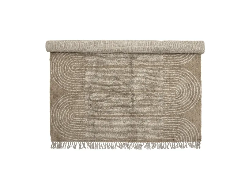 Zeynep Gulvtæppet fra Bloomingville er vævet i bomuld og har et smukt tuftet mønster og dekorative frynser i enderne. Tæppets varme farve bringer en hyggelig atmosfære til ethvert hjem.