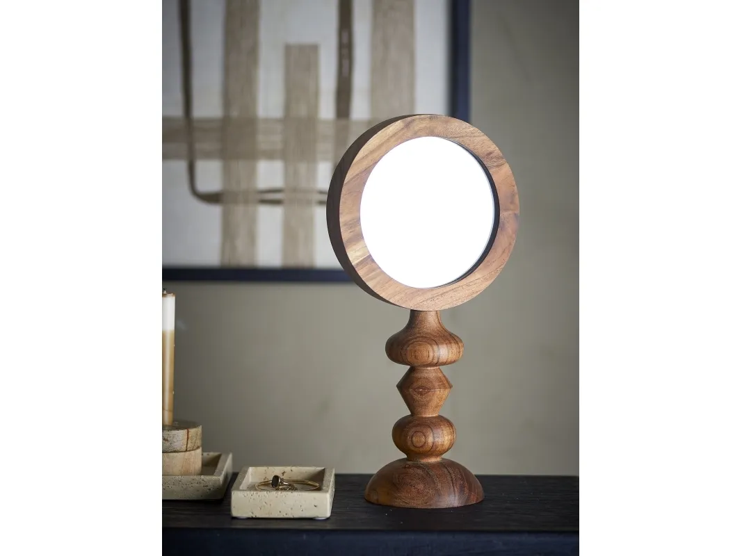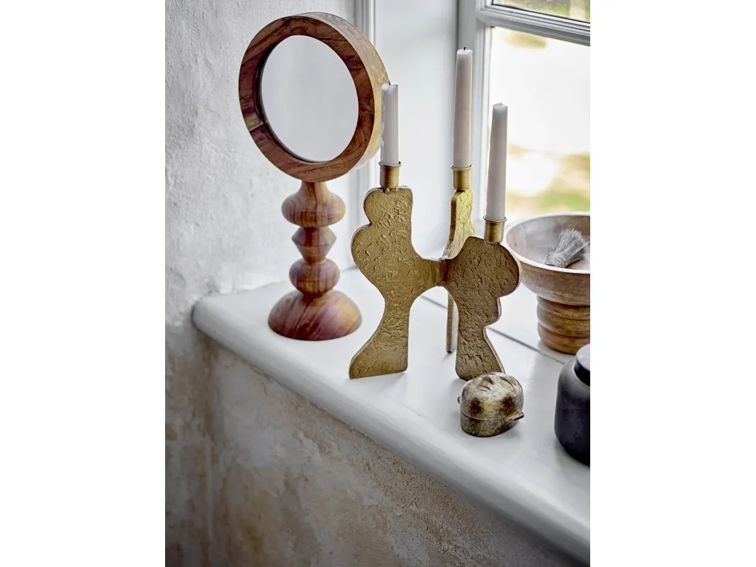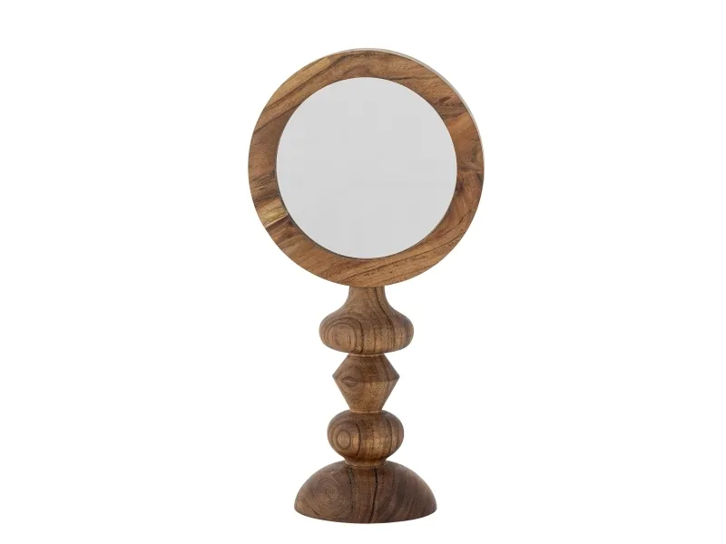 Malukka Bordspejlet fra Bloomingville er fremstillet i akacietræ, hvilket tilfører en naturlig varme til dit hjem. Spejlets dekorative former skaber et unikt og stilfuldt udtryk, og træets naturlige farvevariationer gør hvert spejl helt unikt. Placér det på badeværelset eller makeup-bordet for at bringe et strejf af natur ind i din indretning.