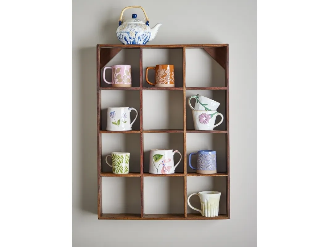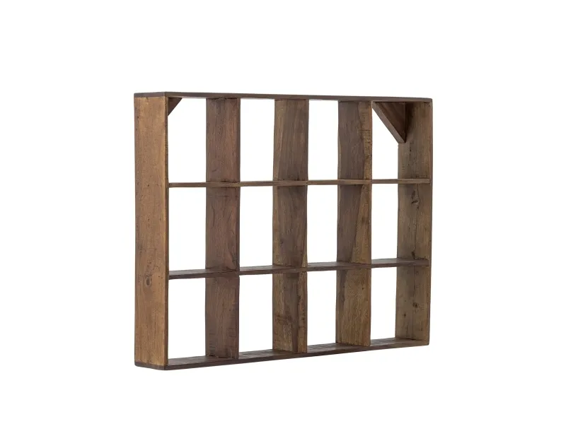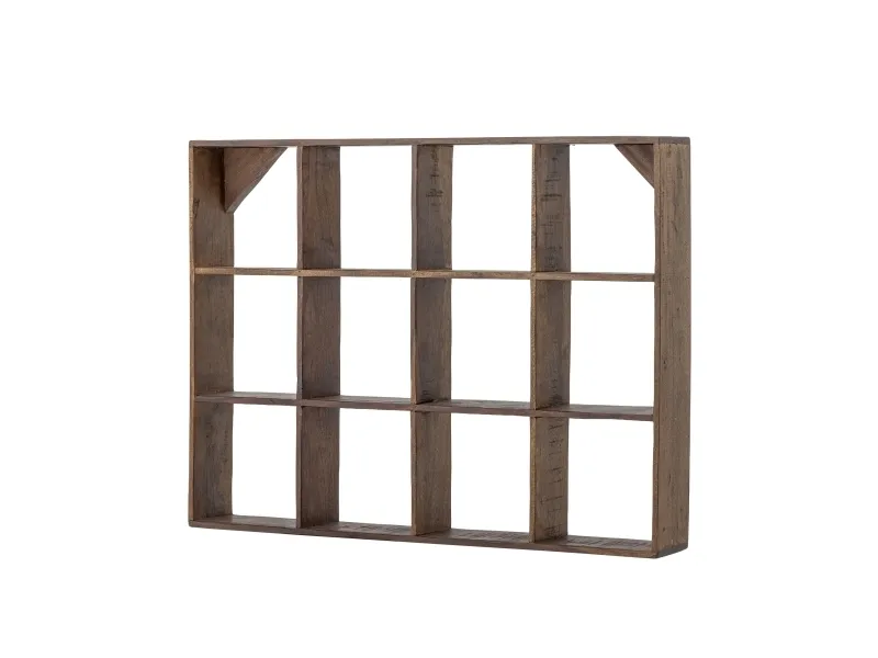 Tilo Hylden fra Creative Collection er en træhylde med en voksbehandlet overflade, der fremhæver udtrykket. Den er designet med tolv lige store fag og slanke lister i en varm brun tone og præges af præcise vinkler og et rent, stringent layout. Farvenuancer kan variere, så hvert stykke er unikt.