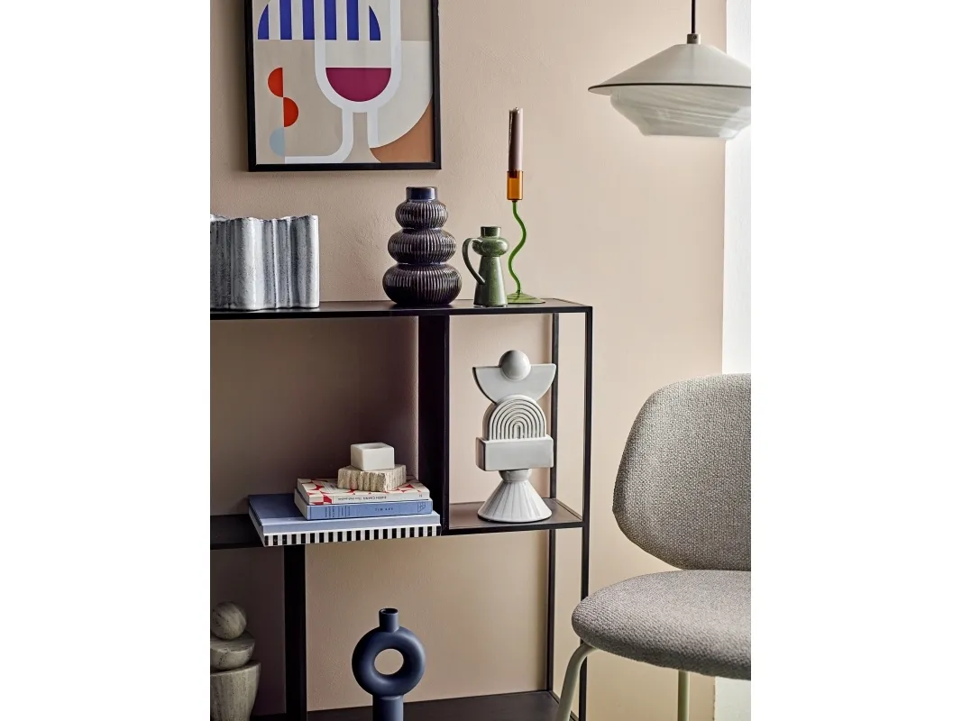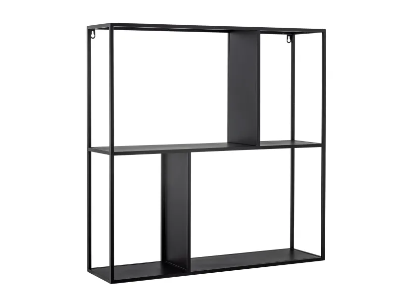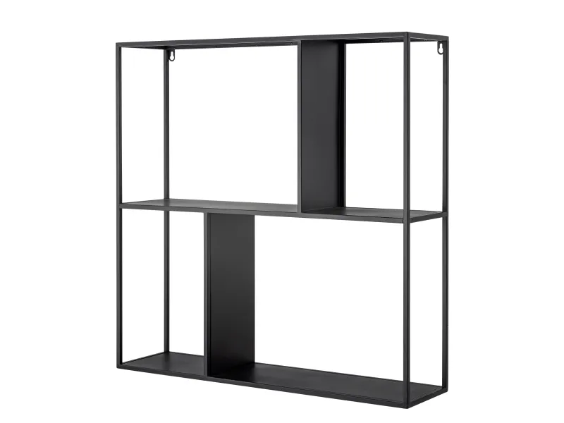 Mack Hylden fra Bloomingville er konstrueret af metal, hvilket sikrer holdbarhed og en let vægt. Den har en sort finish, der tilføjer et stærkt visuelt element til designet. Med rene linjer og åbne rum giver hyldens geometriske komposition mulighed for alsidig brug i forskellige indretningsstile.