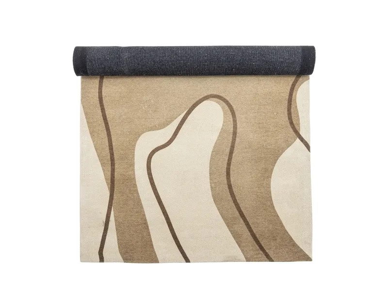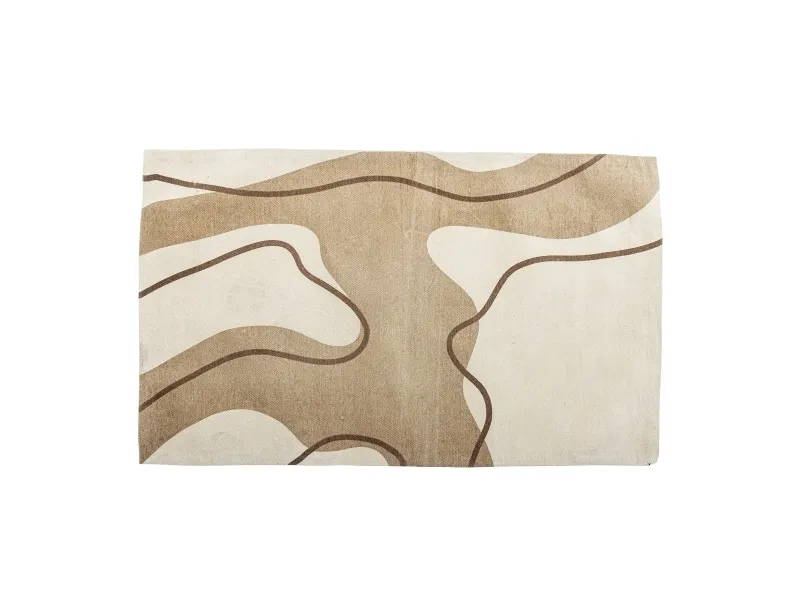 Volano Tæppet fra Bloomingville viser et flydende, abstrakt mønster, der skaber en følelse af bevægelse. Designet består af buede linjer i mørkebrun, som elegant bølger sig over tæppets overflade og omrammer lyse, organiske former. Tæppet er udformet i nuancer af beige og brun, der bidrager til en varm og indbydende atmosfære.