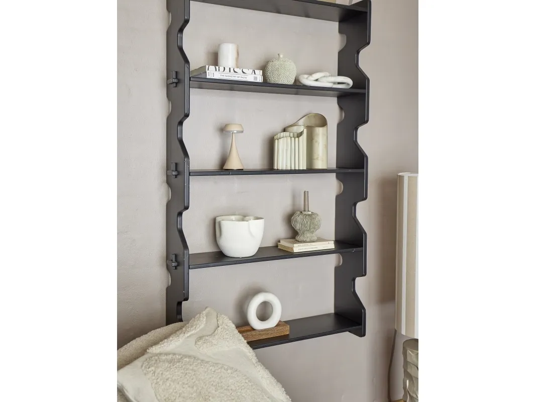 Savoya Bogreolen fra Bloomingville er lavet af sort fyrretræ med en smuk, skinnende lakfinish. Brug bogreolen som en praktisk opbevaringsløsning i stuen til bøger og dekorationer, eller i køkkenet til opbevaring af diverse små køkkenredskaber.