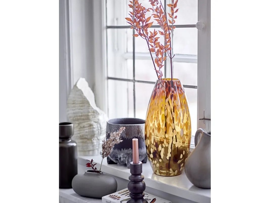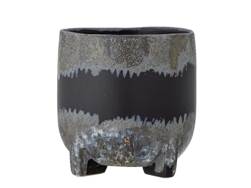 Nasru Urtepotteskjuleren fra Bloomingville er lavet af sortfarvet stentøj med en unik reaktiv glaze i top og bund af Urtepotteskjuleren. Den er yderst dekorativ og helt perfekt i vindueskarmen med en lille grøn plante efter eget valg. Den unikke reaktive glaze vil gøre, at farven vil variere, som en del af charmen.