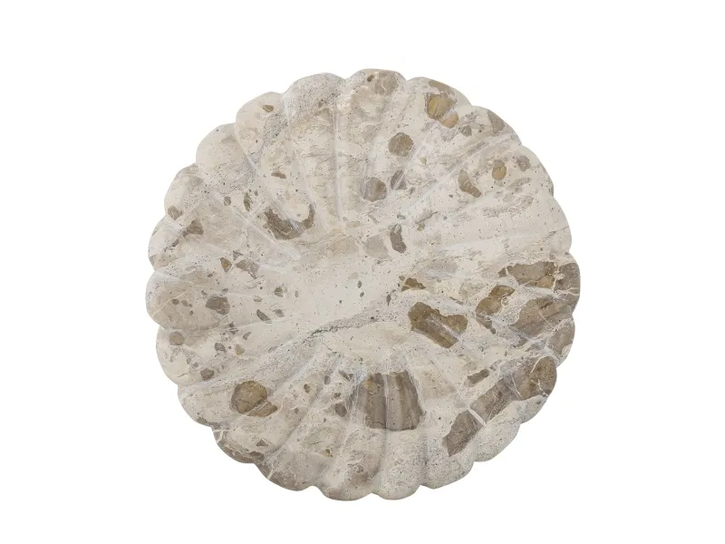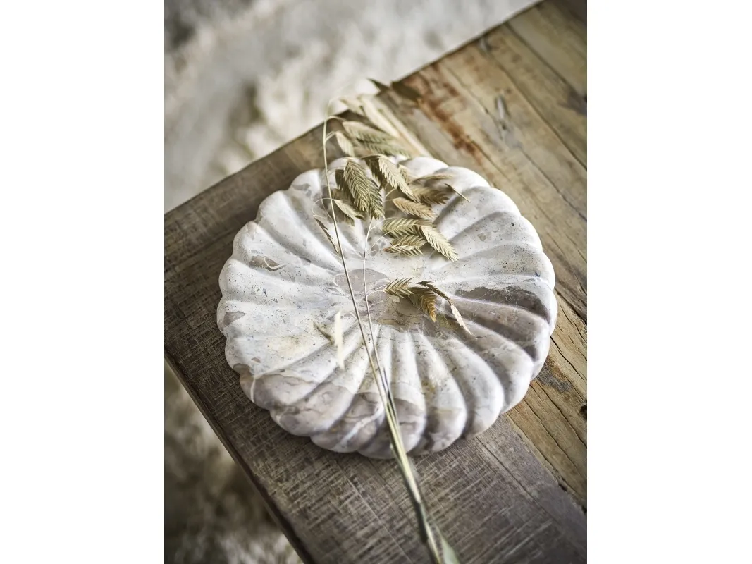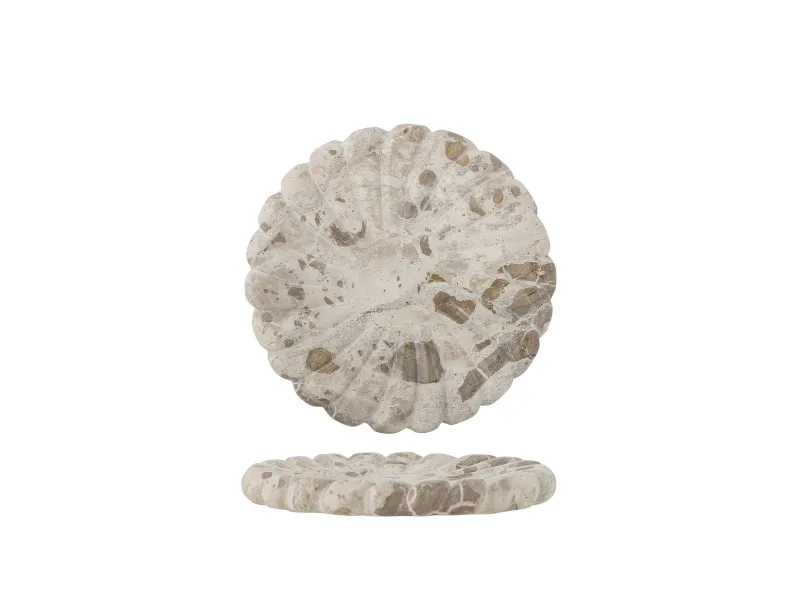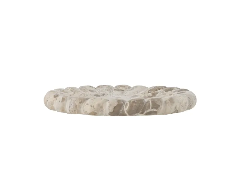 Marlie Fadet fra Bloomingville er lavet af marmor og har en blød, rund form med udskårne detaljer. Den naturlige variation i stenens farve og struktur gør hver bakke unik med et organisk udtryk.
