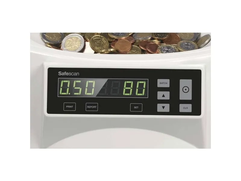 Safescan 1250 Basic kommer med en stor tragt, der kan holde op til 500 mønter. Med en tælle hastighed på 220 mønter pr. minut, vil Safescan 1250 hurtigt få sorteret dine mønter. Hæld blot alle mønterne i tragten - du behøver ikke at sortere dem på forhånd - og tryk på start. Lad Safescan 1250 hjælpe dig med at optimere dine arbejdsgange. Der er ingen hurtigere måde at klare dine møntruller, bankindskud og kontantskuffer på.