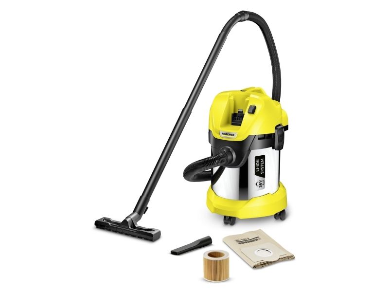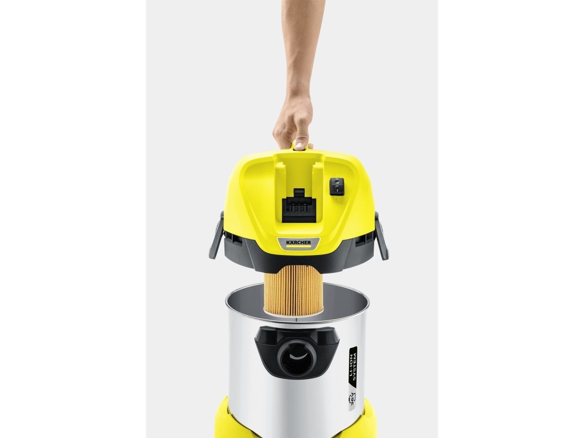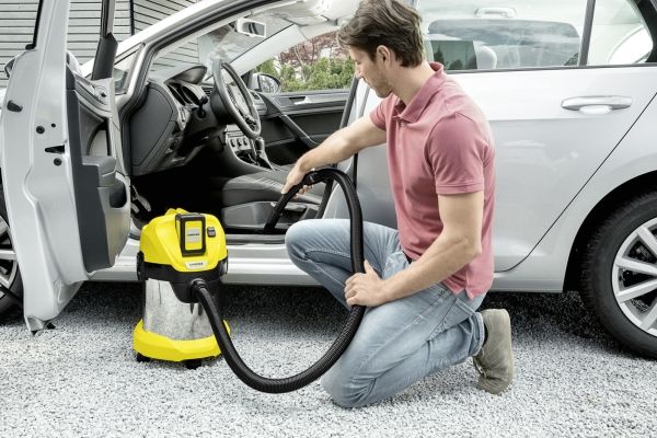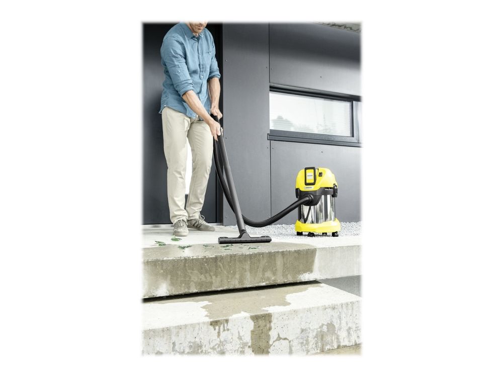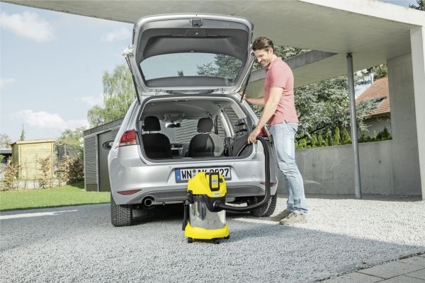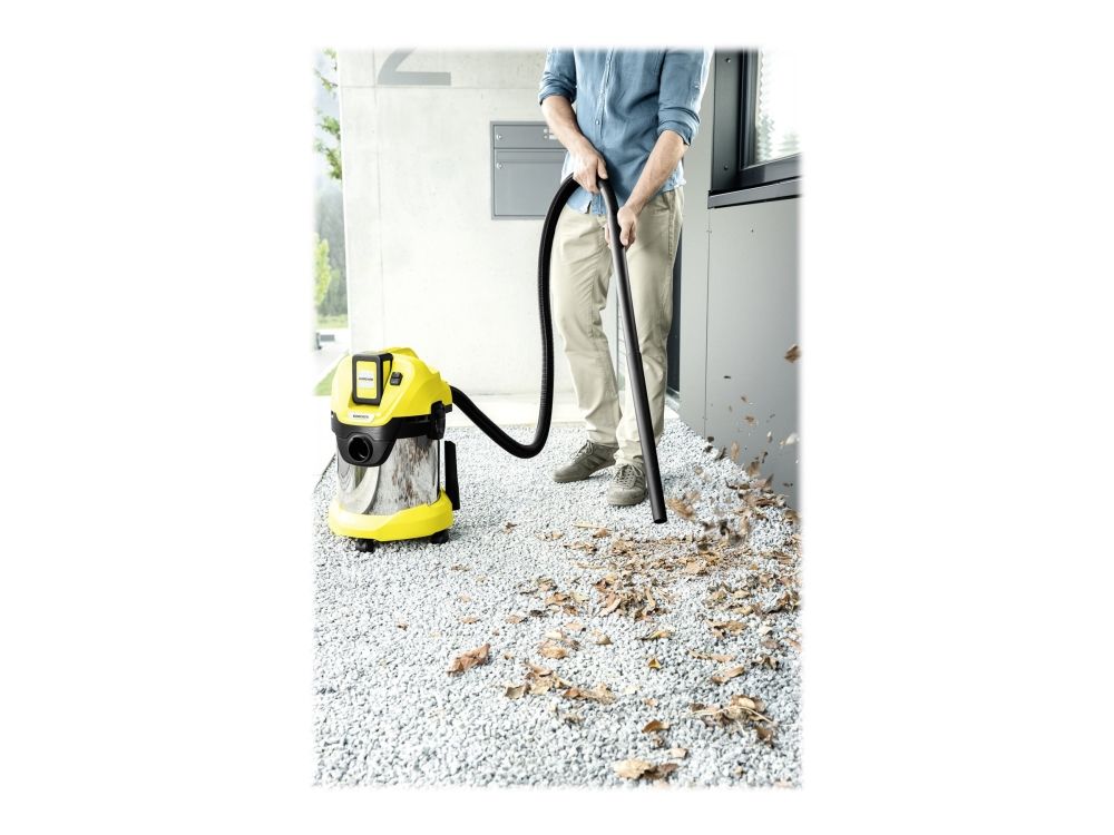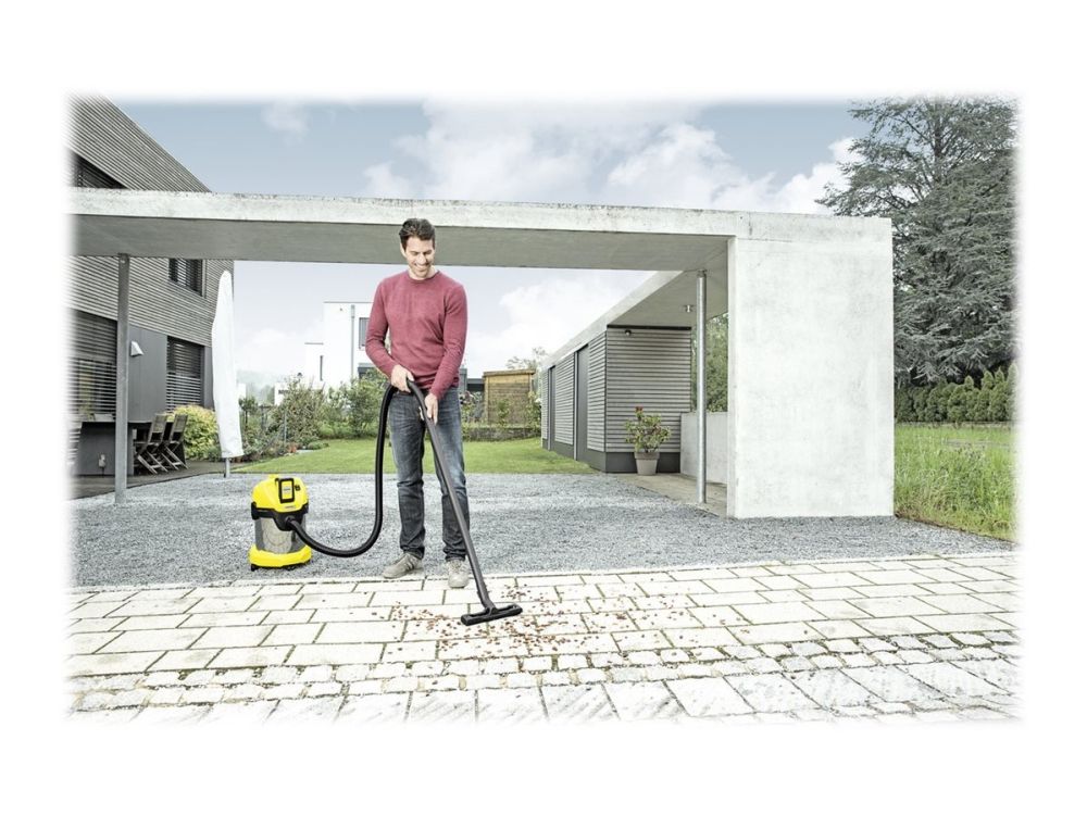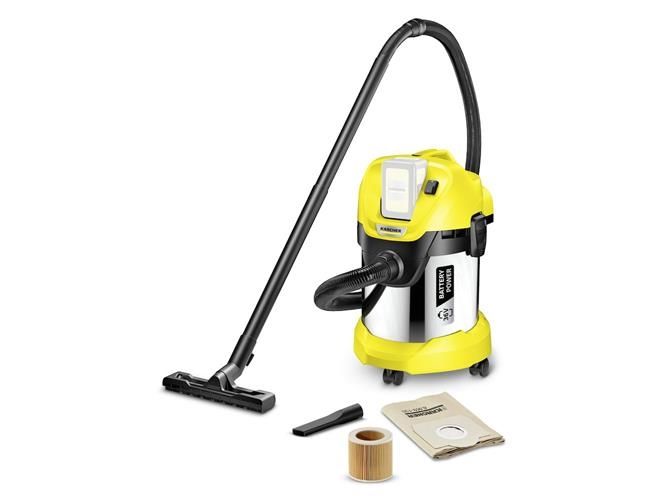The battery-powered multi-purpose vacuum cleaner WD 3 Battery Premium does not just offer maximum freedom of movement during vacuuming. It has a whole range of advantages to impress you with. For example, the extremely stable stainless steel container with a capacity of 17 litres. A cartridge filter which makes vacuuming both dry and wet dirt incredibly easy without ever changing the filter. The detachable handle for attaching accessories directly to the flow-optimised suction hose. A clips floor nozzle including mixed inserts for ideal dirt pick-up. A running time of 15 minutes with the 36 V/2.6 Ah Li-Ion exchangeable battery and 30 minutes with the 36 V/5.2 Ah Li-Ion exchangeable battery (not included in the scope of supply). A parking position for the suction tube and floor nozzle. Additional extras include the blower function, the Pull & Push locking system, the ergonomic carrying handle and the extremely practical accessory storage.