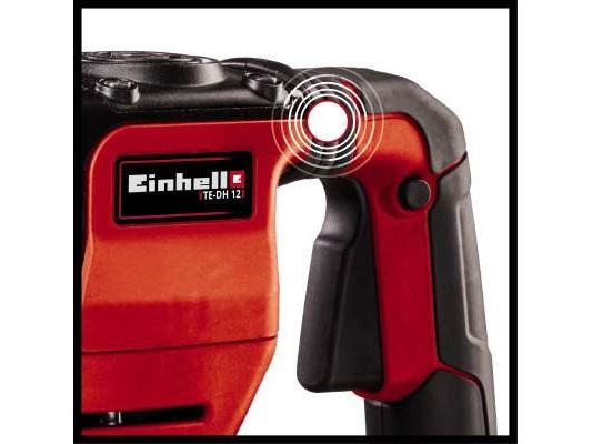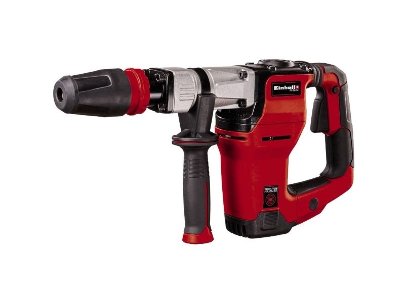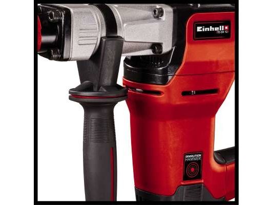 The Einhell TE-DH 12 demolition hammer is the ideal helper for really tough jobs when performing home construction work. For demolishing parts of walls or tearing out floor and wall coverings, the demolition hammer has a power rating of 1,050 W and a blow rate of 4,100/minute to deliver undreamed-of power, exactly where it is needed. It therefore makes light work of restoration, renovation and conversion projects. The demolition hammer is equipped with a rugged SDS-max tool chuck. For low-vibration operation it has a vibration-absorbing handle and an adjustable additional handle. In spite of its impact force this tool is also easy to handle and, thanks to the extra-long and robust rubber cable, is also highly versatile. Equipped with a pointed chisel and a flat chisel, the TE-DH 12 demolition hammer from Einhell is ready for immediate action. Supplied in transport and storage case E-Box.