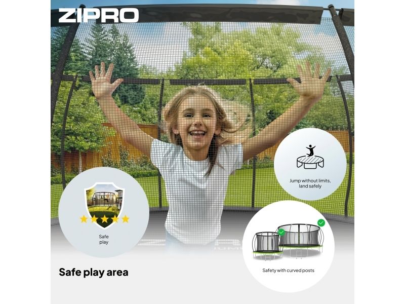 For å sørge for bekymringsløs moro for barn og fred for foreldrene, har designerne fra ZIPRO utstyrt trampolinen med alt som er nødvendig for å sikre at bruken kun bringer glede.