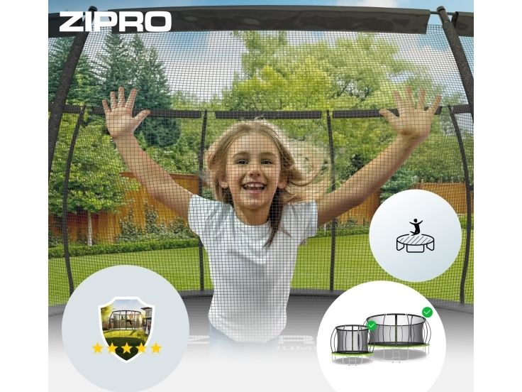 Trampolinen ZIPRO JumpPro med PREMIUM-konstruksjon er designet slik at flaten for å hoppe er fullstendig adskilt fra fjærene. Dette systemet har den høyeste sikkerhetsgrad.