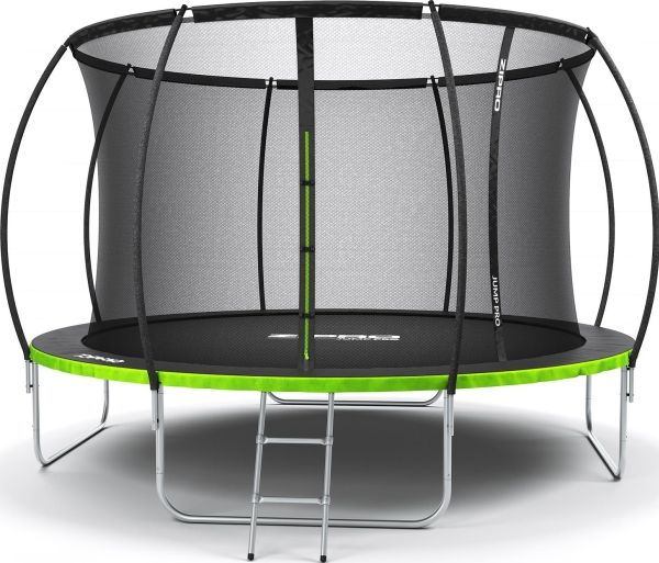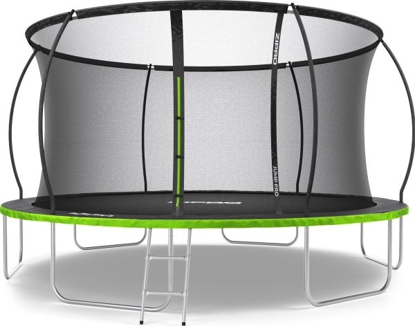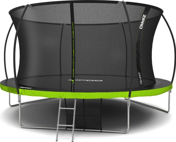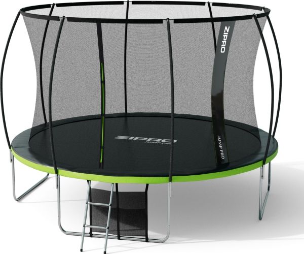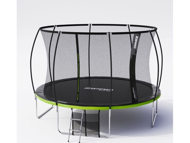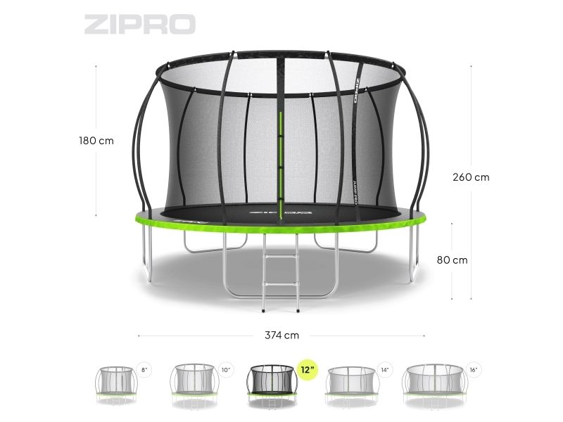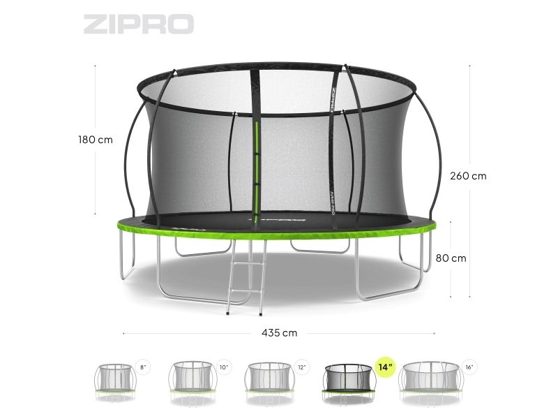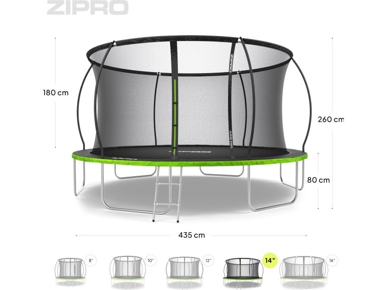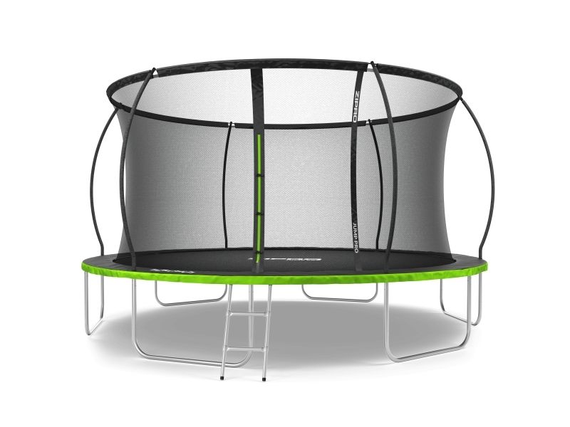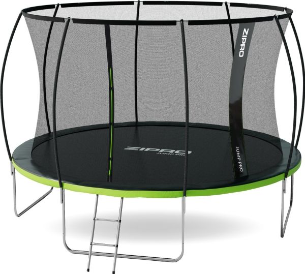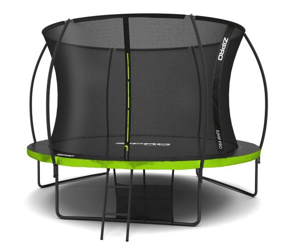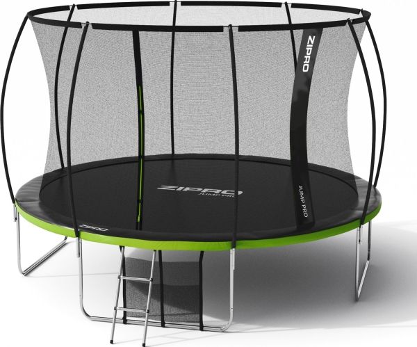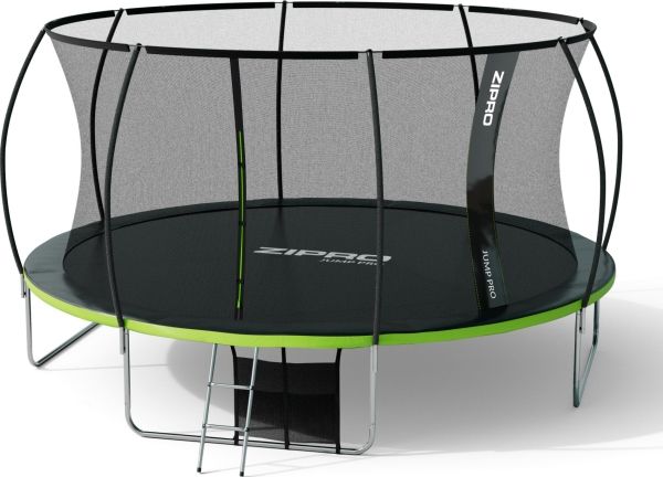 Trampolinen ZIPRO JumpPro PREMIUM har en forsterket konstruksjon og et innovativt monteringssystem for nettverkskonstruksjonen. Bruk av et indre nett separerer hoppområdet fra fjærene.
