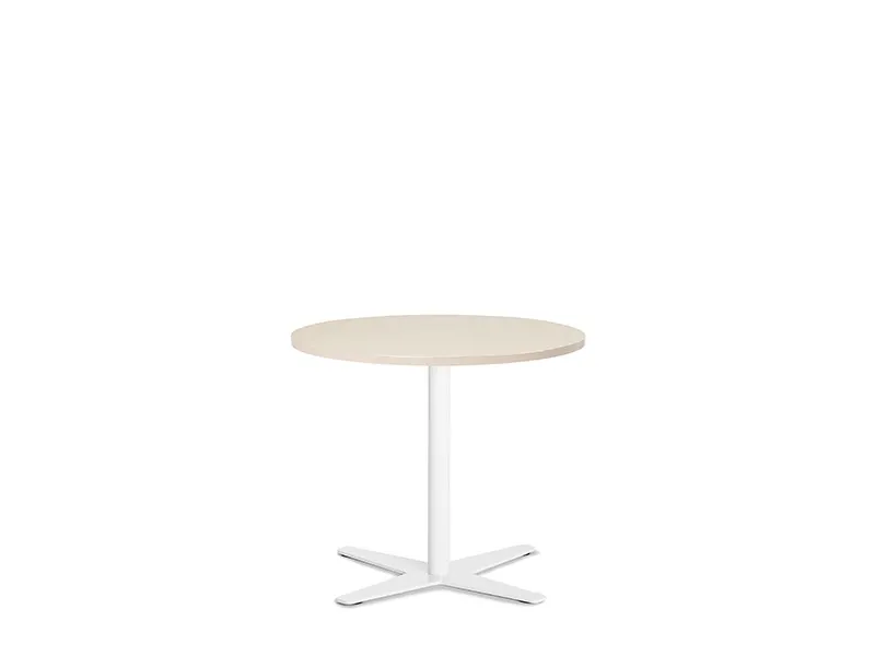 Bord Amy med Ø900 mm bordplade i birk DPL med alugråt understel, højde 582 mm.