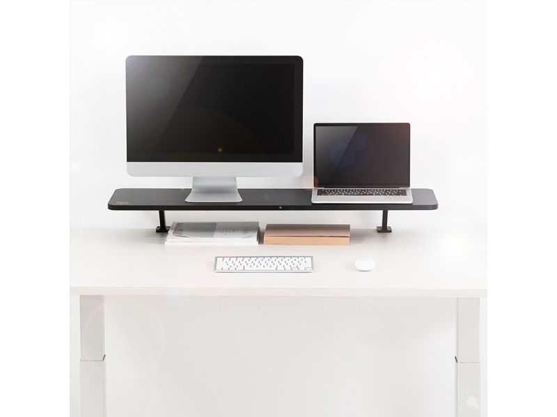 This tabletop montior riser holds up to 20 kg, allowing room for dual monitor and laptop displays along with small office supplies and decor. Adding a second tier to your desk with two sturdy clamps; creates a vertical storage space for increasing work comfort and organization. Bringing you a whole new dimension to your workstation. The raised screen changes the view and at the same time the sitting posture.