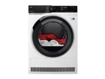 AEG TR9T75680, Frittstående, Frontmatet, Varme pumpe, Hvit, Rotasjon, Riktig/Høyre