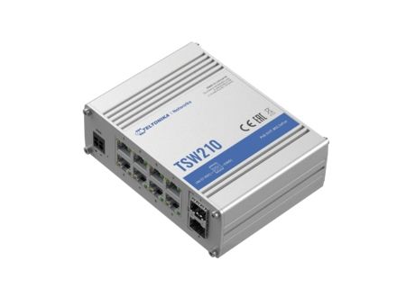 Teltonika TSW210 - Switch - industriell - ikke-styrt - 8 x 10/100/1000 + 2 x SFP - DIN-skinnemonterbar, overflatemonterbar