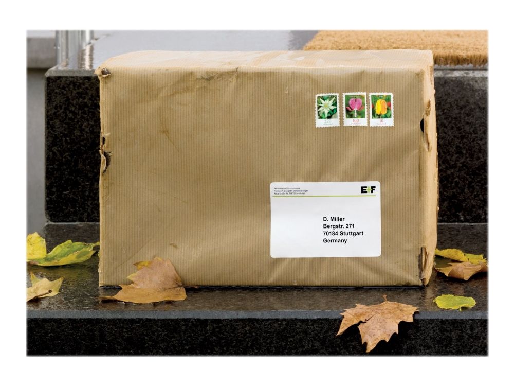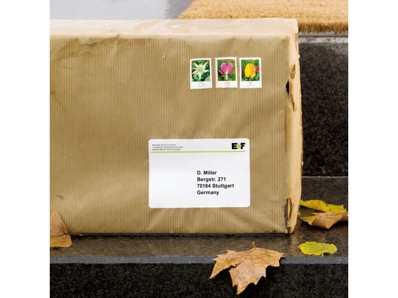 - Firm adhesion to all packaging materials: envelopes, parcels, shipping tubes, film, PE and Tyvek