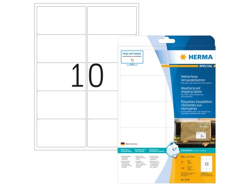 HERMA Special - Polyester - matt - selvklebende med ekstra styrke - hvit - 57 x 99.1 mm 250 etikett(er) (25 ark x 10 forsendelsesfilmetiketter