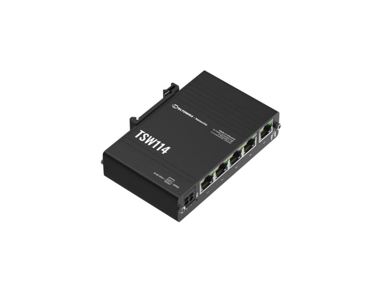 TSW114 er en prisgunstig måte å forenkle tilkoblingsmulighetene på, med plug-and-play-funksjonalitet og 5 x Gigabit Ethernet-porter som gir stabile og pålitelige tilkoblingsmuligheter for løsninger med høy båndbredde. Switchen har frontvendte porter og en integrert DIN-skinnebrakett som gjør den enkel å installere i mange industrimiljøer - spesielt i kontrollskap.