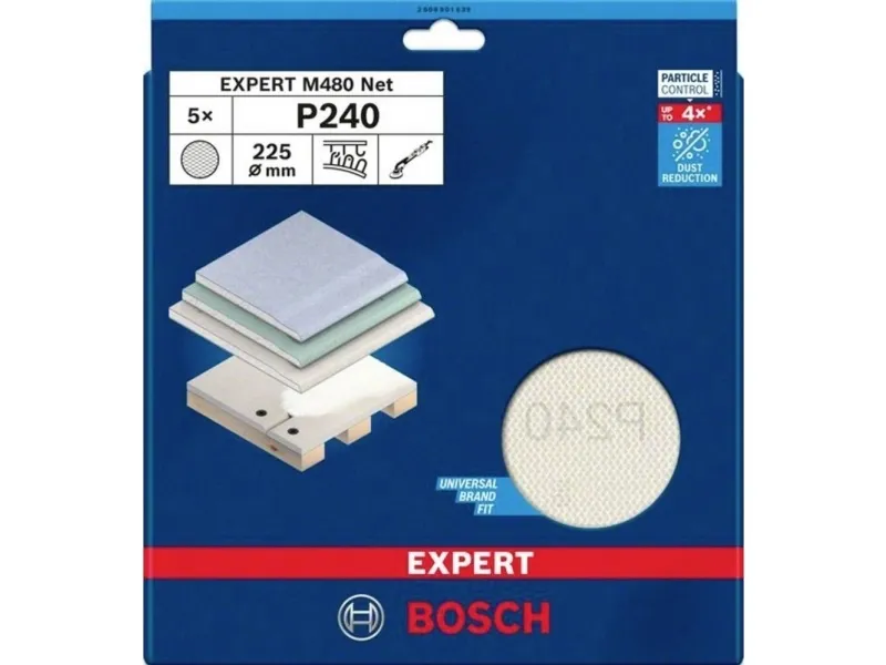 Op til 4 gange bedre støvreduktion end med et Bosch C420 sandpapir - støv er et af de vigtigste problemer ved slibning. Den sætter slibepapiret til, hvilket gør det praktisk talt ubrugeligt. Den dækker alt i rummet og gennemtrænger hele huset. Derfor har vi udviklet Bosch Article Control-teknologi - til støvreduceret arbejde på et nyt ydelsesniveau. Bosch Article Control sikrer, at alle støvpartikler suges ind i dit vakuum eller dit filter. Bosch EXPERT M480 netværksstruktur-slibeblad er forrest i dette system: Partikler føres lige gennem det åbne net i stedet for at tilsætte overfladen eller at forurene luften. Dette giver en høj grad af effektivitet og en meget lang levetid. Det var ikke nemt at reducere støv ved slibning, men vi har fundet en løsning. Dette Bosch EXPERT M480 slibenet bruger vores Article Control-teknologi for at minimere støvmængden i luften. Enkel fastgørelse med velcrolukning.