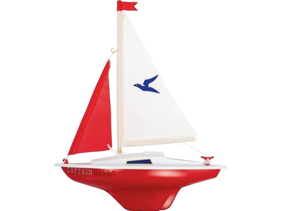 Captain Hook sejlbåd af høj kvalitet. Kompakt konstruktion. Undervands-speciallakering. Samlet og med udførlig sejlvejledning. Sejlrulle med indstillelig storsejl. Også egnet til badekarret, havedam og badesø.