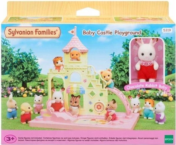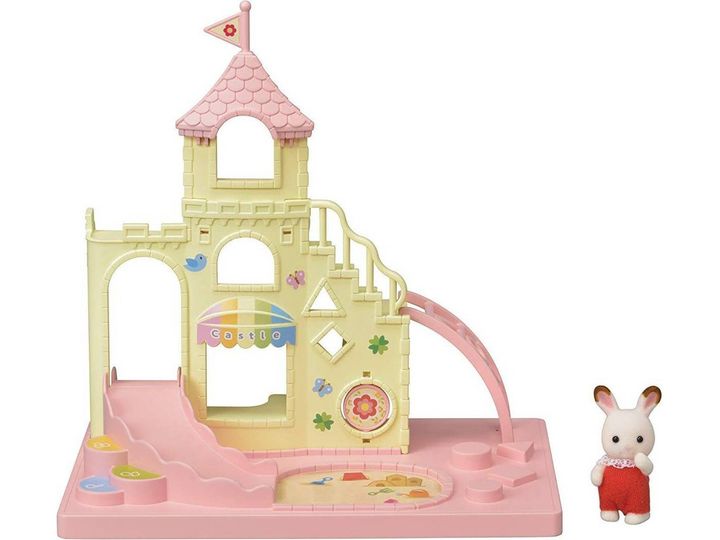 Sylvanian Families Baby eventyr-slottet er en herlig lekeplass for Sylvanian Babies. Via klatretrappen kan de små klatre oppover og titte ut av vinduet i det lille tårnet. Via trappen kommer de nedover igjen. Via den lille sklien kommer babyene direkte inn i sandkassen der det bakes søte sandkaker. Inkludert i lekesettet er Sylvanian Baby eventyrslottet og en Sjokoladekanin baby-figur. Mål (bxhxd): 20x21x13 cm. Egnet for barn f.o.m. 3 år.