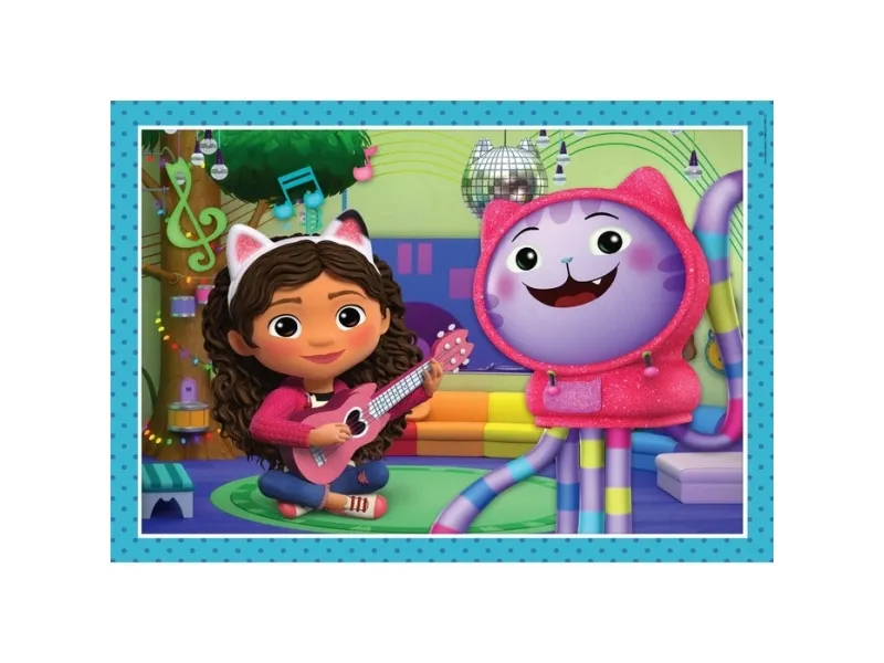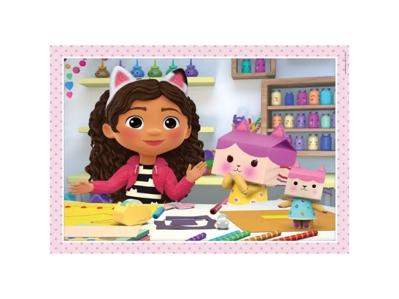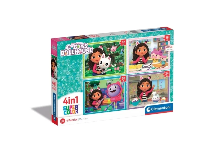 Motivet för dessa högkvalitativa pussel från Clementoni är de mycket populära karaktärerna från Gabbys dockhus! Förpackningen innehåller fyra pussel av olika storlek (12, 16, 20 och 24 pusselbitar). Rekommenderad ålder: från 3 år.
