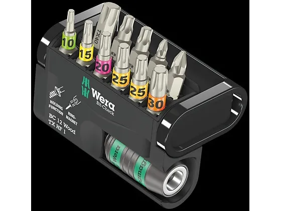 Wera 05057435001, 11 stykker, Pozidriv, Torx Plus, 1/4", PZ 1, PZ 2, TX10, TX15, TX20, TX25, TX30, TX40, 124 g